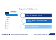 This document is not to be disclosed to any third party without the prior consent of the European Border and Coast Guard Agency (Frontex) Cooperation with third countries !Justification No 1 D Frontex 0 CWG 0 COM 0 EURLO 0 ERRIN 0 MS i5:: FRONT EX Ill EUROPEAN BORDER AND COAST GUARD AGENCY 54 th DCP 13 th PRAN meetings 12-13 Feb 2020, Zagreb