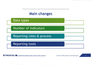 This document is not to be disclosed to any third party without the prior consent of the European Border and Coast Guard Agency (Frontex) Main changes Data types Number of indicators Reporting roles & process Reporting tools ~ FRONT EX Ill EUROPEAN BORDER AND COAST GUARD AGENCY 54 th DCP 13 th PRAN meetings 12-13 Feb 2020, Zagreb