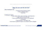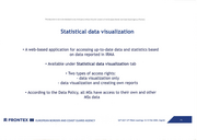 This document is not to be disclosed to any third party without the prior consent of the European Border and Coast Guard Agency (Frontex) How can you use the service? • Data visualization only ✓ Visualize existing statistical reports ✓ Print a statistical report ✓ Use filters • Creating own reports ✓ Create tables, charts, maps, tree maps, world clouds, etc. ✓ Apply filters and rank the data ✓ Set-up interactions between objects in the dashboard ✓ Formatting ✓ Save the report in "My folder" only ✓ Ask Frontex to publish the report to be visible for other colleagues ~ FRONT EX Ill EUROPEAN BORDER AND COAST GUARD AGENCY 54 th DCP 13 th PRAN meetings 12-13 Feb 2020, Zagreb