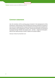 LIMITED Frontex European course for CIRAM risk analysts Common statement We, the members of the working group involved in the development of this framework, hereby declare that the following training standards are based on the Common Integrated Risk Analysis Model and the elaborated Guidelines for Risk Analysis Units published by Frontex, aiming harmonisation of training at European level for CIRAM risk analysts and – by that – enhanced interopera- bility of the staff working in border-related risk analysis offices. Warsaw, Frontex HQ, November 2017 4