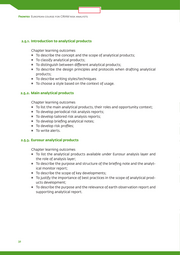 LIMITED Frontex European course for CIRAM risk analysts 2.5.1. Introduction to analytical products Chapter learning outcomes To describe the concept and the scope of analytical products; To classify analytical products; To distinguish between different analytical products; To describe the design principles and protocols when drafting analytical products; To describe writing styles/techniques To choose a style based on the context of usage. 2.5.2. Main analytical products Chapter learning outcomes To list the main analytical products, their roles and opportunity context; To develop periodical risk analysis reports; To develop tailored risk analysis reports; To develop briefing analytical notes; To develop risk profiles; To write alerts. 2.5.3. Eurosur analytical products Chapter learning outcomes To list the analytical products available under Eurosur analysis layer and the role of analysis layer; To describe the purpose and structure of the briefing note and the analyt- ical monitor report; To describe the scope of key developments; To justify the importance of best practices in the scope of analytical prod- ucts development; To describe the purpose and the relevance of earth observation report and supporting analytical report. 32