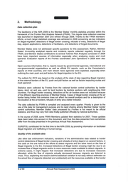 2. Methodology Data collection plan The backbone of the ARA 2009 is the Member States' monthly statistics provided within the framework of the Frontex Risk Analysis Network (FRAN). This regular data collection exercise was launched in September 2007 and refined through 2008. Thanks to the FRAN members' efforts, a much larger statistical coverage was achieved in 2008 concerning six key indicators on illegal migration: detections of illegal border crossing, refusals of entry, detections of illegal stay, asylum applications, detections of facilitators, and detections of forged documents. Member States were not addressed specific questions for this assessment. Rather, Member States' bi-monthly analytical reports and incidents reports collected regularly through the FRAN, and Member States contributions to several Tailored Risk Analyses conducted in 2008 have been important sources of information especially when analysing routes and modi operandi. Evaluation reports of the Frontex coordinated Joint Operations in 2008 were also used. Open sources information, that is, reports issued by governmental agencies, international and non-governmental organisations as well as official EU reports, such as the Commission's reports on third countries, and main stream news agencies were exploited, especially when outlining the main push and pull factors for illegal migration to the EU . The outlook for 2010 was based on the analysis of the state of play regarding illegal migration at the external borders of the EU, push and pull factors as well as factors impacting routes and modi operandi. Statistics were collected by Frontex from the national border control authorities by border types- land, air and sea-and for land borders by borders sections with neighbouring third countries. For illegal border crossing, detections at the air borders were not included because of the different reporting practices of Member States. Cases of illegal border crossing at the air border being limited this omission does not affect the overall analysis and for a description of the situation at the air borders, refusals of entry are a better indicator. The data collected by FRAN is compiled and analysed every quarter. Priority is given to the use of the data for management purpose and its rapid sharing among Member States' border control authorities. Member States' data processed by Frontex is not meant to be official statistics, and thus may vary from data finally published officially by national authorities. In the course of 2008, some FRAN Members updated their statistics for 2007. These updates have been taken into account in this document, and thus the data presented here sometimes differ from the data presented in the previous Annual Risk Assessment. EUROPOL contributed for the first time to the ARA 2009, by providing information on facilitated illegal migration and trafficking in human beings. Quality of the available data Like other law enforcement indicators, variations of the administrative data related to border control (detections of illegal border crossing and refusals of entry) depend on several factors, in this case on the one hand of the efforts to detect migrants and the other hand on the flow of illegal migrants to the EU. Increased detections of illegal border crossing might be due to an increase flow of illegal migrants and/or to more resources made available to detect migrants. In extreme cases, it might happen that increased detections are due to increased resources allocated, while the flow of migrants actually decreased because migrants are deterred to cross. Thus, explaining the reasons behind statistical variation is not easy without estimates on the actual flow of migrants (detected and undetected) and the resources available at the border 8 of 80 Annual Risk Assessment 2009