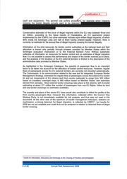 Justification 4 (staff and equipment). This le suffers exc the border ille all Conservative estimates of the stock of illegal migrants within the EU vary between three and six million, according to the latest results of Clandestino, an EU sponsored project implemented by the ICMPD, but other estimates indicate eight million illegal migrants, of which 80% inside the Schengen area and half of them having entered legally. However, there is currently no estimate for the annual flow of illegal migrants crossing the border illegally. Information on the total resources for border control authorities at the national level and their allocation is known only partially through answers provided by Member States within the Schengen evaluation mechanism or to the External Borders Fund. Without systematic collection of information on resources for border control and on estimates of illegal migration flow, it is not possible to assess the performance and impact of the border controls put in place, and the analysis of the situation at the EU external borders is limited to the description of the administrative data provided by Member States. As highlighted in the Schengen Catalogue, the quantity of passenger flow is an important factor to be taken into account for the allocation of border control resources. However, regular flows of passengers across the EU external borders are currently not recorded systematically. The Commission, in its communication related to the new tool for integrated European Border Management Strategy, estimated the regular flow of passengers across the external EU border (in and out movements of EU citizens and third country nationals) to range from 300 million based on travellers' overnight stays, to 880 million based on Member States' own estimates derived from samples. Most external border crossings take place at the airports, with Eurostat estimating at about 271 million the number of passengers from non-EU flights, follow by land and sea border crossings (no estimates available). The quantity and place of the issued EU visas would also contribute to refine the profile of the third country passengers flow. However this information, collected within the Council Visa Working Party, is not immediately available for risk analysis, and thus was not used in this document. At the other side of the spectrum of border management indicators, statistics on 1 readmission, a strong deterrent for illegal migration, is collected by CIREFl , but results for 2008 are not yet available and could thus not be analysed in relation to detected flows of illegal border crossing. 1 Centre for Information, Discussion and Exchange on the Crossing of Frontiers and Immigration 9 of 80 Annual Risk Assessment 2009