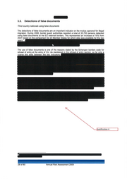 3.5. Detections of false documents Third country nationals using false documents The detections of false documents are an important indicator on the modus operandi for illegal migration . During 2008, border guard authorities reported a total of 20,700 persons detected using false documents at the EU external borders. This represented an increase of 16% from 2007 based on the corn arison for 25 Member States for which data was available for the two 13 ears . The use of false documents is one of the reasons stated by the Schengen borders code for refusal of entry at the entry of EU. As mentioned in the refusal of entr section so far onl a coarse link exits between the two indicators. Justification 4 28 of 80 Annual Risk Assessment 2009