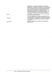 Text Removed - Justification 4 deployed in Text Removed - Justification 3. Text Removed - Justification 1, 2, Greek Police Officer followed the standard procedure and measures stablished by local authorities. Moreover, he immediately informed the doctor about his health status as he did not feel well. He was recommended to stay at home in quarantine and being monitored during all that time. As he did not get better, Covid - 19 testing was performed and the final result was positive. Text Removed - Justification 3 police cars and office premises Measures have been washed and disinfected. It is worth to highlight that Text Removed - Justification 5 is currently deployed in Text Removed - Justification 3; according Assessment with Text Removed - Justification 2, the infected Text Removed - Justification 4 has never been paired or been in touch with team members. Nowadays, Text Removed - Justification 4 is hospitalized in Final outcome Alexandroupolis. Frontex - European Border and Coast Guard Agency