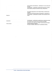 Disclaimers of Non-disclosure 1 Personal Data Names and/ or contact details The non-disclosed text contains personal data, in particular, the name of an individual. Its disclosure would affect the privacy and integrity of the individual and is therefore precluded pursuant to the exception laid down in Article 4(1 )(b) of Regulation (EC) No 1049/2001. 1 Medical data The non-disclosed text contains information about the medical condition of an individual participating in Frontex activities. The disclosure of such information would undermine the protection of the privacy and the integrity of the individual as protected by European Union laws regarding the protection of personal data. In this regards the text is not disclosed pursuant to the exception laid down in Article 4(1) (b) of Regulation (EC) No 1049/2001. 2 (plural) Names and/or contact details The non-disclosed text contains personal data, in particular the names of individuals. Its disclosure would affect the privacy and integrity of the individuals and is therefore precluded pursuant to the exception laid down in Article 4(1 )(b) of Regulation (EC) No 1049 /2001. 3 Medical data The non-disclosed text contains information about the medical condition of the individuals participating in Frontex activities. The disclosure of such information would undermine the protection of the privacy and the 1 Regulation (EC) No 1049/2001 of the European Parliament and of the Council of 30 May 2001 regarding public access to European Parliament, Council and Commission documents (OJ L 145, 31.5.2001, p . 43). _ _ _ _2_R-' eg" -u~l gµ6n (EC) No 1049/ 200 1 of t he European Par/Jament and of t he Counc, / of 30 May 2001 regarding pub/ re access to European Par/J ament, Counc, / and Commission documents (OJ L 145, 31.5.2001, p. 43). 3 Regulation (EC) No 1049/2001 of the European Parliament and of the Council of 30 May 2001 regarding public access to European Parliament, Council and Commission documents (OJ L 145, 31 .5.2001, p. 43).