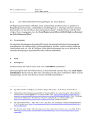 Wissenschaftliche Dienste Sachstand Seite 6 WD 2 - 3000 - 029/18 2.2.2. Zur völkerrechtlichen Vertretungsbefugnis des Assad-Regimes Die Regierung eines Staates ist befugt, einem anderen Staat eine Intervention zu gestatten. In Bürgerkriegssituationen bzw. vergleichbaren Konfliktlagen ist es allerdings mitunter schwierig festzustellen, wer den betroffenen Staat repräsentieren kann. Im Falle Syriens wird aber über- 10 wiegend davon ausgegangen, dass das Assad-Regime auch völkerrechtlich befugt war, Russland um Unterstützung zu bitten. 11 2.3. Zwischenfazit Die russische Beteiligung am Syrienkonflikt beruht auf der ausdrücklichen Zustimmung des Assad-Regimes, die völkerrechtlich vertretungsbefugt ist. Insofern verletzt Russland nicht das Gewaltverbot nach Art. 2 Nr. 4 VN-Charta. Unter dem Gesichtspunkt des ius ad bellum ist die russische Beteiligung am Syrienkonflikt daher völkerrechtskonform. 3. USA 3.1. Hintergrund Die Intervention der USA in Syrien lässt sich in zwei Phasen unterteilen: 12 Das ursprüngliche Ziel der US-Intervention in Syrien bestand zunächst darin, das Assad-Regime zu bekämpfen. Bereits seit dem Jahr 2012 unterstützen die USA ihre Verbündeten dabei, syrische Gruppierungen wie die Freie Syrische Armee mit Waffen zu beliefern. 13 10 Vgl. Michael Bothe, in: Wolfgang Graf Vitzthum (Hrsg.), Völkerrecht, 5. Aufl. 2010, 8. Abschnitt Rn. 23. 11 Mehrdad Payandeh, Militäraktion gegen ISIS: ein Präzedenzfall für eine Aufweichung des völkerrechtlichen Gewaltverbots?, verfassungsblog.de v. 24.9.2014, abrufbar unter: https://verfassungsblog.de/militaeraktion- gegen-isis-ein-praezedenzfall-fuer-eine-aufweichung-des-voelkerrechtlichen-gewaltverbots/. Pierre Thielbörger, „Grenzen des Völkerrechts – Wer darf was in Syrien?“, tagesschau.de v. 7.3.2018, abrufbar unter: https://www.tagesschau.de/ausland/syrien-voelkerrecht-101.html (Claudia Kornmeier). 12 Vgl. auch Sachstand WD 2 - 3000 - 043/17 vom 1. Juni 2017, „Der Syrienkrieg – Akteure und Verhandlungen“, S. 16 ff., abrufbar unter: https://www.bundestag.de/blob/515094/6add202f3f24cc5c6295548c897f0d07/wd-2- 043-17-pdf-data.pdf. 13 Eric Schmitt, „C.I.A. Said to Aid in Steering Arms to Syrian Opposition“, nytimes.com v. 21.6.2012, abrufbar unter: https://www.nytimes.com/2012/06/21/world/middleeast/cia-said-to-aid-in-steering-arms-to-syrian- rebels.html.
