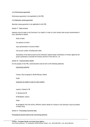 1.6.4 Performance guarantee Performance guarantee is not applicable to this FWC. 1.6.5 Retention money guarantee Retention money guarantee is not applicable to this FWC. Article I. 7 - Bank account Payments must be made to the Contractor's (or leader's in case of a joint tender) bank account denominated in euro, identified as follows: Name of bank: Full address of branch: Exact denomination of account holder: Full account number including bank codes: Amendment of the bank account by the Contractor requires proper notification to Frontex signed by the person authorised to conclude the Contract and sent in line with art. 1.8. Article 1.8 - Communication details For the purpose of this FWC, communications must be sent to the following addresses: Contracting authority: Frontex, Plac Europejski 6, 00-844 Warsaw, Poland Email: Contractor (or leader in case of a joint tender): Lazaris A. Gomos D. OE P. Kountourioti 87 81100 Mitilini. Greece Email: By derogation from this Article, different contact details for Frontex or the Contractor may be provided in Order forms. Article I. 9 - Processing of personal data Processing of personal data by the contracting authority Frontex - European Border and Coast Guard Agency www.frontex.europa.eu I Pl. Europejski 6, 00-844 Warsaw, Poland I Tel. +48 22 205 95 00 I Fax +48 22 205 95 01