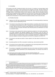 11 .3. Severability Each provision of this FWC is severable and distinct from the others. If a provision is or becomes illegal, invalid or unenforceable to any extent, it must be severed from the remainder of the FWC. This does not affect the legality, validity or enforceability of any other provisions of the FWC, which continue in full force and effect. The illegal, invalid or unenforceable provision must be replaced by a legal, valid and enforceable substitute provision which corresponds as closely as possible with the actual intent of the parties under the illegal, invalid or unenforceable provision. The replacement of such a provision must be made in accordance with Article 11.11 . The FWC must be interpreted as if it had contained the substitute provision as from its entry into force. 11.4. Provision of services 11.4. 1 Signature of the FWC does not guarantee any actual purchase. The contracting authority is bound only by specific contracts implementing the FWC. 11.4. 2 The contractor must provide services of high quality standards, in accordance with the state of the art in the industry and the provisions of this FWC, in particular the tender specifications and the terms of its tender. Where the Union has the right to make modifications to the results, they must be delivered in a format and with the necessary information which effectively allow such modifications to be made in a convenient manner. 11.4. 3 The contractor must comply with the minimum requirements provided for in the tender specifications. This includes compliance with applicable obligations under environmental, social and labour law established by Union law, national law and collective agreements or by the international environmental, social and labour law provisions listed in Annex X to Directive 2014/24/EU 2 , compliance with data 3 protection obligations resulting from Regulation (EU) 2016/679 and Regulation (EU) 2018/1725 • 4 11.4.4 The contractor must obtain any permit or licence required in the State where the services are to be provided . 11.4.5 All periods specified in the FWC are calculated in calendar days, unless otherwise specified . 11.4.6 The contractor must not present itself as a representative of the contracting authority and must inform third parties that it is not part of the European public service. 11.4. 7 The contractor is responsible for the personnel who carry out the services and exercises its authority over its personnel without interference by the contracting authority. The contractor must inform its personnel that: (a) they may not accept any direct instructions from the contracting authority; and (b) their participation in providing the services does not result in any employment or contractual relationship with the contracting authority. OJ L 94 of 28.03 .2014 , p. 65 Regulation (EU) 2016/679 of the European Parliament and of the Cauncit of 27 April 2016 on the protect/on of natural persons with regard to the processing of personal data and on the free movement of such data, and repealing Directive 95/46/EC, OJ L 119, 4.5.2016, p. 1, https: / leur -lex .europa.eu/legal-content!EN/TXTI ?url=uriserv:OJ.L .2016. 119.01 .0001 .01 .ENG 4 Regulation (EU) 2018/ 1725 of 23 October 2018 on the protection of natural persons with regard to the processing of personal data by the Union institutions, bodies, offices and agencies and on the free movement of such data, and repealing Regulation (EC) No 45/ 2001 and Decision No 1247/2002/EC, OJ L 295/39, 21 . 11.2018, tJllR.s:lleur -lex.europa.eu!legal -content!ENITXTIPDFl?url =CELEX:32018R1725ftfrom=EN Frontex - European Border and Coast Guard Agency www.frontex .europa .eu I Pl. Europejski 6, 00-844 Warsaw, Poland I Tel. +48 22 205 95 00 I Fax +48 22 205 95 01
