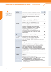 European Border and Coast Guard Standing Corps Category 1 Training Programme 1.6 Job Competences Upon successful completion the learner will: JC SQF Level Fundamental rights have the key fundamental rights provisions stipulated in EU knowledge and and international legislation in relation to basic border 1 4 understanding of guard activities defined ethical codes, values and binding professional have standards relevant to protecting fundamental rights knowledge and 2 4 and preventing violations in the context of border guard understanding of activities the key processes, rules and procedures for interacting have with agencies, authorities and organisations in the knowledge and 3 4 context of basic BCG activities in protecting fundamental understanding of rights examine and assess the validity and usage of travel- related documentation and recognise where it is be able to 4 4 necessary to refer cases for further examination whilst respecting fundamental rights recognise risks and threats to the safety, security and be able to well-being of persons in need of international protection 5 4 and follow related referral procedures taking responsibility for performing routine, non- be responsible or complex border guard activities whilst respecting have autonomy 6 4 fundamental rights and preventing violations, in for accordance with EU and international legislation identifying persons who may be in need of protection responsibility and or assistance in the context of routine, non-complex 7 4 autonomy for border guard activities, referring them to the competent authorities 48