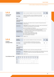 Generic Studies 1. Generic studies for Standing Corps Training (Category 1) 1.5.2 Learning outcomes Upon successful completion the learner will be able to: LO SQF Level Frontex Code explain the principles, values and behavioural standards of Conduct knowledge for BCG activities in accordance with the Frontex Code 9 4 of Conduct skills responsibility and autonomy group work, case studies, lectures, classroom and group discussion, learning methods brainstorming theory test: the learner explains the principles, values and behavioural assessment standards for participating in Frontex activities for LO 9 including but not limited to: ▪▪ how does Frontex ensure that the conduct of the staff deployed to its operations has full respect for fundamental rights? recommended ▪▪ what is the procedure in the case of a suspected violation of the indicative content Frontex Code of Conduct? ▪▪ Frontex Serious Incident Report (SIR) ▪▪ Frontex Complaints Mechanism (CM) ▪▪ accountability for misconduct CCC Basic subject 1.5.2 1.5.3 Learning outcomes Upon successful completion the learner will be able to: LO SQF Level European list the key benefits and challenges of pursuing a borderguardship knowledge common EU border and coast guard organisational 10 4 culture skills responsibility and autonomy learning methods group work, lectures, classroom and group discussion theory test: the learner lists the key benefits and challenges of pursuing assessment a common EU border and coast guard organisational culture CCC Basic subject 1.5.3 Cross Reference Table LO LO LO LO LO LO LO LO LO LO LO JC 1 2 3 4 5 6 7 8 9 10 JC 1 × × × × × × × × JC 2 × JC 3 × × 47