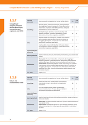European Border and Coast Guard Standing Corps Category 1 Training Programme 2.2.7 Learning outcomes Upon successful completion the learner will be able to: LO SQF Level Smuggling of describe phases, methods, techniques and organisation weapons, weapons of smuggling of weapons, weapons of mass destruction, of mass destruction, 24 4 ammunition, explosives and CBRN (chemical, biological, ammunition and knowledge radiological and nuclear materials) explosives and CBRN identify the types of criminal networks dealing with weapon smuggling, smuggling of weapons of mass 25 4 destruction, ammunition, explosives and CBRN perform border and coast guard activities in accordance with procedures and operational tactics in relation to 26 4 smuggling of weapons, weapons of mass destruction, skills ammunition, explosives and CBRN employ safety measures for dealing with cases related to smuggling of weapons, weapons of mass destruction, 27 4 ammunition, explosives and CBRN responsibility and autonomy practical exercises, lectures, interactive presentations, group work, case learning methods studies theory test: the learner describes components of smuggling of weapons, weapons of mass destruction, ammunition and explosives, and identifies types of criminal networks dealing with such crimes practical test: the learner performs border and coast guard activities assessment in accordance with procedures and operational tactics in relation to smuggling of weapons, weapons of mass destruction, ammunition, explosives and CBRN, ensuring the necessary safety measures in a simulated situation CCC Basic subject 2.3.7 2.2.8 Learning outcomes Upon successful completion the learner will be able to: LO SQF Level Nature and outline the indicators of nature and environmental environmental crime knowledge cross-border crime in accordance with applicable 28 4 procedures carry out initial activities related to nature and skills environmental crime in the area of responsibility in 29 4 accordance with applicable procedures responsibility and autonomy practical exercises, lectures, interactive presentation, group workgroup learning methods work, case studies theory test: the learner outlines indicators of nature and environmental cross border crime assessment practical test: the learner carries out initial activities related to nature and environmental crime in their area of responsibility in a simulated situation CCC Basic subject 2.3.8 74