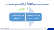 Code of Conduct To all persons participating in Frontex operational activities Fundamental International rights protection write foot text here 23 2019-05-09