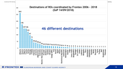 Combined 47th Meeting with Direct Contact Points in Return Matters& 6th Meeting with Pre-Return Assistance Network 20 - 21 February 2017, Sofia, Bulgaria LIMITED-Releasable to the participants of the meeting 300 Destinations of ROs coordinated by Frontex 2006 – 2018 262 (SoP 14/09/2018) 250 200 178 147 146 150 123 46 different destinations 97 100 71 50 44 42 36 32 24 19 19 18 17 16 15 15 14 12 10 9 9 8 6 5 5 5 4 4 4 3 3 3 2 2 1 1 1 1 1 1 1 0 Albania Kosovo Nigeria Tunisia Serbia Georgia FYROM Pakistan Armenia Afghanistan Colombia Bosnia i Herzegovina Ecuador Moldova Gambia Ukraine Congo (DRC) Iraq Russia Egypt Ghana Dominican Republic Cameroon Montenegro Guinea Togo Ivory Coast Bangladesh Senegal Sri Lanka Sudan Lebanon Mongolia Peru Azerbaijan Uzbekistan Somalia Benin Burundi Syria Turkey Mali Kyrgizistan Vietnam 12