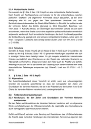 2.2.4 Nichtpolitische Straftat Es muss sich bei § 3 Abs. 2 Satz 1 Nr. 2 AsylG um eine nichtpolitische Straftat handeln. Nach Ansicht von Rechtsprechung und Literatur ist für die Unterscheidung zwischen politischen Straftaten und allgemeiner Kriminalität darauf abzustellen, ob bei einer Abwägung aller für und gegen den Täter sprechenden Umstände und unter Berücksichtigung insbesondere der Zweck-Mittel-Relation im Einzelfall der politische oder der kriminelle Gehalt des Delikts überwiegt (s. OLG Düsseldorf, Beschluss vom 14.01.2003 – 4 Ausl (A) 308/02). Ein Überwiegen des kriminellen Gehalts ist auch dann anzunehmen, wenn eine Straftat durch eine angebliche politische Motivation vermeintlich aufgewertet werden soll. Auch terroristische Handlungen, die durch ihre Gewalt gegenüber der Zivilbevölkerung geprägt sind, sind schwere nichtpolitische Straftaten, selbst wenn mit ihnen – vorgeblich – politische Ziele verfolgt werden (EuGH, Urteil vom 9.11.2010, C-57/09 u. C-101/09). 2.2.5 Teilnahme Gemäß § 3 Absatz 2 Satz 2 AsylG gilt § 3 Absatz 2 Satz 1 AsylG auch für Ausländer, die andere zu den in § 3 Absatz 2 Satz 1 Nr. 1-3 genannten Handlungen angestiftet oder sich in sonstiger Weise daran beteiligt haben. Es gilt mangels einheitlicher internationaler Kriterien grundsätzlich eine Orientierung an den Regeln des nationalen Strafrechts zu Täterschaft und Teilnahme. Erfasst sind neben dem Täter auch der Anstifter und Gehilfe. Allerdings muss auch im Fall der Beihilfe der Tatbeitrag nach seinem Gewicht dem eines täterschaftlichen Tatbeitrages entsprechen (vgl. BVerwG, Urteil vom 07.07.2011 -10 C 26.10). 3. § 3 Abs. 2 Satz 1 Nr. 3 AsylG 3.1 Allgemeines Der Ausschlusstatbestand dieser Vorschrift ist erfüllt, wenn aus schwerwiegenden Gründen die Annahme gerechtfertigt ist, dass der Antragsteller den Zielen und Grundsätzen der Vereinten Nationen, wie sie in der Präambel und den Artikeln 1 und 2 der Charta der Vereinten Nationen verankert sind, zuwidergehandelt hat. 3.2. Tatbestandsvoraussetzungen 3.2.1 Handlungen, die den Zielen und Grundsätzen der Vereinten Nationen zuwiderlaufen Bei den Zielen und Grundsätzen der Vereinten Nationen handelt es sich um allgemeine Werte und Zielsetzungen der Völkergemeinschaft, die regelmäßig eine Konkretisierung durch Vertragswerke oder Resolutionen erfahren. EuGH und BVerwG vertreten unter Berufung auf Resolutionen des UN-Sicherheitsrates die Ansicht, dass zumindest Handlungen des internationalen Terrorismus allgemein den Ausschlusstatbestände 7/19 Stand 11/20