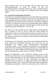 Solche Handlungen können nicht nur terroristische Akte als solche, sondern auch Unterstützungshandlungen im Umfeld der konkreten Tat oder einer (terroristischen/verbotenen) Organisation allgemein sein. Klare und glaubhafte Indizien können sich bspw. aus dem Vorliegen einer Anklageschrift oder eines Haftbefehls ergeben. 8.2.2 Sicherheit der Bundesrepublik Deutschland Die Sicherheit der Bundesrepublik Deutschland im Sinne dieser Bestimmung umfasst die innere und äußere Sicherheit des Staates. Sie schützt nach innen den Bestand und die Funktionstüchtigkeit des Staates und seiner Einrichtungen. Das schließt den Schutz vor Einwirkungen durch Gewalt und Drohungen mit Gewalt auf die Wahrnehmung staatlicher Funktionen ein. In diesem Sinne richten sich auch Gewaltanschläge gegen Unbeteiligte zum Zwecke der Verbreitung allgemeiner Unsicherheit gegen die innere Sicherheit des Staates (BVerwG, Urteil vom 06.02.2019 - 1 A 3.18, Rn. 29). Eine Gefahr für die innere Sicherheit kann ein Ausländer dadurch darstellen bedeuten, dass er Straftaten im Sinne von §§ 80 ff. StGB oder andere Straftaten von entsprechendem Gewicht und ähnlicher Zielsetzung begeht (vgl. BVerwG, Urteil vom 05.05.1998 – 1 C 17/97). Er kann auch dadurch zu einer solchen Gefahr werden, dass er eine Organisation unterstützt, die ihrerseits die innere Sicherheit der Bundesrepublik Deutschland gefährdet. Zur Beurteilung, ob eine Organisation als terroristisch oder extremistisch einzustufen ist, können nationale oder internationale Bewertungen (sog. EU-Terrorliste; sog. UN- Sanktionsliste) oder Rechtsakte (bspw. Verbotsverfügungen, Gerichtsurteile) herangezogen werden, in denen entsprechende Organisationen und Einzelpersonen genannt werden. Eine terroristische Vereinigung unterstützt, wer, ohne selbst Mitglied der Organisation zu sein, deren Tätigkeit und terroristische Bestrebungen direkt oder über eines ihrer Mitglieder fördert (vgl. BGH, Urteil vom 14.08.2009 – 3 StR 552/08). Bezüglich der Mitgliedschaft in einer terroristischen Vereinigung bedarf es keiner Differenzierung zwischen einem Kreis von herausgehobenen Funktionären bzw. Kadern und den sonstigen Angehörigen. Es gibt keinen ausreichend sachlichen Grund dafür, denjenigen, der sich in Kenntnis von Zielen, Programmatik und Methoden der Organisation dieser anschließt und in ihr betätigt, allein deshalb nicht als Mitglied der Vereinigung einzustufen, weil er nicht dem Kreis der führenden Funktionäre angehört (vgl. BGH, Beschluss vom 28.09.2010 – 3 StR 214/10, Urteil vom 28.10.2010 – 3 StR 179/10). Ausschlusstatbestände 12/19 Stand 11/20