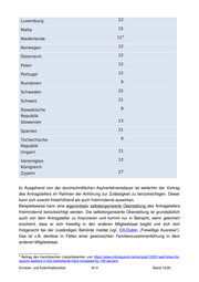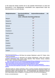 a) Die Länge des Verbots orientiert sich an den aktuellen Erkenntnissen zur Dauer der Asylverfahren in den Mitgliedstaaten, einschließlich einer angenommenen Dauer der Gerichtsverfahren von sechs Monaten. Mitgliedstaaten Durchschnittliche Asylverfahrensdauer (in Monaten) (inkl. 6-Monate Gerichtsverfahren) Belgien 18 1 Bulgarien 11 2 Dänemark 10 3 Estland 12 4 Finnland 12 5 Frankreich 10 Griechenland 15 Irland 25 Island 13 6 Italien 15 Kroatien 19 Lettland 18 7 Liechtenstein 12 Litauen 12 1 http://www.asylumineurope.org/ AIDA-Report des jeweiligen Mitgliedstaat, update 2017: Belgien, Italien, Portugal und Schweden. 2 http://www.asylumineurope.org/ AIDA-Report des jeweiligen Mitgliedstaates, update 2018: Bulgarien, Frankreich, Griechenland, Irland, Kroatien, Malta, Österreich, Polen, Rumänien, Schweiz, Slowenien, Spanien, Ungarn, Vereinigtes Königreich und Zypern. 3 https://www.nyidanmark.dk/en-GB/Words-and-concepts/US/Diverse-US/Application-processing-times-in- the-Danish-Immigration-Service?anchor=9155D2AAB82448DAAE228B19F8E4226B 4 https://www2.politsei.ee/en/teenused/international-protection/applying-for-asylum 5 https://migri.fi/en/frequently-asked-questions-about-processing-times-for-asylum-applications 6 https://utl.is/index.php/en/application-examination und https://www.raudikrossinn.is/hvad-gerum-vid/folk-a- flotta/faq 7 Öffentliche Quellen für: Lettland, Liechtenstein, Litauen, Luxemburg, Norwegen, Slowakische Republik und Tschechische Republik: Republik Österreich BFA - Länderinformationsblatt der Staatendokumentation. Die Staatendokumentation steht ausländischen Asyl- und Fremdenbehörden oder ausländischen Gerichten, soweit Gegenseitigkeit besteht unentgeltlich zur Verfügung (§ 5 Abs. 6 Nr. 9 BFA-Einrichtungsgesetz). Einreise- und Aufenthaltsverbot 8/14 Stand 10/20
