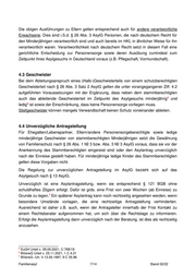 Im Heimatland bestand bereits eine familiäre Lebensgemeinschaft, die jedoch in Deutschland nicht fortgeführt oder wiederaufgenommen werden muss. Bei der Feststellung des Bestands der Lebensgemeinschaft im Herkunftsland handelt es sich um ein wesentliches Prüfungskriterium zur Verhinderung der missbräuchlichen Erlangung eines abgeleiteten Schutzstatus. Die Einreise nach Deutschland sowie das Asylgesuch erfolgten noch zum Zeitpunkt 3 4 der Minderjährigkeit und Ledigkeit des sich ebenfalls im Bundesgebiet aufhaltenden schutzberechtigten Kindes, wobei die Minderjährigkeit und Ledigkeit zum Zeitpunkt der Entscheidung nicht mehr gegeben sein müssen. Die Schutzzuerkennung des stammberechtigten Kindes darf nicht auf Gründen beruhen, die erst mit Volljährigkeit des Kindes eingetreten sind (z.B. eintretende Wehrpflicht). Das Innehaben und Wahrnehmen der Personensorge für das schutzberechtigte Kind muss zum Zeitpunkt des Asylgesuchs vorliegen. Das Sorgerecht umfasst u.a. die Personensorge. Im Hinblick auf Vaterschaftsanerkennungen ist darauf zu achten, dass diese alleine nicht das Vorliegen einer Personensorgeberechtigung bewirkt. Bzgl. des Sorgerechts muss daher geprüft werden, ob der Antragsteller, an den abgeleitet werden soll, tatsächlich sorgeberechtigt ist. Zur elterlichen Sorge im Übrigen s. Asylantragstellung für Minderjährige. Der Antragsteller muss vor der Anerkennung des Stammberechtigten eingereist sein oder den Antrag unverzüglich nach Einreise gestellt haben (s. 4.4 Unverzügliche Antragstellung) Auf der Flucht (auch im Mitgliedstaat) oder in Deutschland nachgeborene Kinder können nur dann Schutz vermitteln, wenn die Schwangerschaft schon im HKL bestand. Zusätzlich zu o.g. Bedingungen ist für den Vater und die Geschwister weitere Voraussetzung der Bestand der familiären Lebensgemeinschaft mit der werdenden Mutter im HKL; die Mutter hat zwangsläufig eine natürliche Verbindung zur Leibesfrucht. Vater ist nach § 1592 BGB, wer im Zeitpunkt der Geburt mit der Mutter des Kindes verheiratet ist, dessen Vaterschaft gerichtlich festgestellt wurde, oder der die Vaterschaft anerkannt hat. Auf die biologische Vaterschaft kommt es nicht an. Eine beurkundete Vaterschaft kann von Seiten der Behörde nicht angefochten werden, sondern muss als gegeben zu Grunde gelegt werden. Enkelkinder, Kinder eines „anderen Erwachsenen“ oder Kinder von Geschwistern sind nicht von der Regelung umfasst. 3 EuGH Urteil v. 09.09.2021, C-768/19 4 BVerwG Urteil v. 25.11.2021, 1 C 4.21 Familienasyl 6/14 Stand 02/22