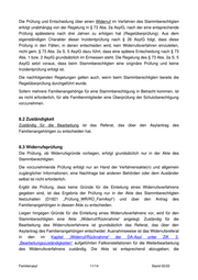 Die Prüfung und Entscheidung über einen Widerruf im Verfahren des Stammberechtigten erfolgt unabhängig von der Regelung in § 73 Abs. 2a AsylG, nach der eine entsprechende Prüfung spätestens nach drei Jahren zu erfolgen hat (Regelüberprüfung). Aus dem eigenständigen Charakter dieser Inzidentprüfung nach § 26 AsylG folgt, dass diese Prüfung in den Fällen, in denen entschieden wird, kein Widerrufsverfahren einzuleiten, nicht gem. § 73 Abs. 2a S. 5 AsylG dazu führt, dass eine spätere Entscheidung nach § 73 Abs. 1 bzw. 2 AsylG grundsätzlich im Ermessen steht. Die Regelung des § 73 Abs. 2a S. 5 AsylG setzt voraus, dass beim Stammberechtigten eine originäre Prüfung und keine Inzidentprüfung erfolgt ist. Die nachfolgenden Regelungen gelten auch, wenn beim Stammberechtigten bereits die Regelüberprüfung durchgeführt wurde. Sofern mehrere Familienangehörige für eine Stammberechtigung in Betracht kommen, ist es nicht erforderlich, für alle Familienmitglieder eine Überprüfung der Schutzberechtigung vorzunehmen. 8.2 Zuständigkeit Zuständig für die Bearbeitung ist das Referat, das über den Asylantrag des Familienangehörigen zu entscheiden hat. 8.3 Widerrufsprüfung Die Prüfung, ob Widerrufsgründe vorliegen, erfolgt grundsätzlich nur in der Akte des Stammberechtigten. Die vorzunehmende Prüfung erfolgt nur an Hand der Verfahrensakte(n) und allgemein zugänglicher Informationen; eine Nachfrage bei anderen Behörden oder dem Ausländer selbst ist nicht erforderlich. Ergibt die Prüfung, dass keine Gründe für die Einleitung eines Widerrufsverfahrens gegeben sind, ist das Ergebnis der Prüfung nur in der Akte des Stammberechtigten festzuhalten (D1821 „Prüfung_WR/RÜ_FamAsyl“) und über den Antrag des Familienangehörigen in dessen Akte zu entscheiden. Liegen hingegen Gründe für die Einleitung eines Widerrufsverfahrens vor, wird für den Stammberechtigten eine Akte „Widerruf/Rücknahme“ angelegt. Zuständig für die Bearbeitung des Widerrufsverfahrens ist grundsätzlich das Referat, das über den Asylantrag des Familienangehörigen entscheidet. Ausnahmsweise ist das Widerrufsreferat in den im Kapitel „Widerruf/Rücknahme“ der DA-Asyl unter Ziff. 2. „Bearbeitungszuständigkeiten“ aufgeführten Fallkonstellationen für die Weiterbearbeitung des Widerrufsverfahrens zuständig. Die Akte ist entsprechend abzugeben; die Familienasyl 11/14 Stand 02/22