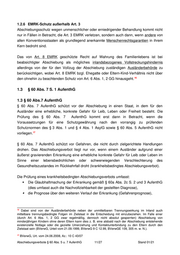 1.2.6 EMRK-Schutz außerhalb Art. 3 Abschiebungsschutz wegen unmenschlicher oder erniedrigender Behandlung kommt nicht nur in Fällen in Betracht, die Art. 3 EMRK verletzen, sondern auch dann, wenn andere von allen Konventionsstaaten als grundlegend anerkannte Menschenrechtsgarantien in ihrem Kern bedroht sind. Das von Art. 8 EMRK geschützte Recht auf Wahrung des Familienlebens ist bei beabsichtigter Abschiebung als mögliches inlandsbezogenes Vollstreckungshindernis allerdings von der für den Vollzug der Abschiebung zuständigen Ausländerbehörde zu berücksichtigen, wobei Art. 8 EMRK bzgl. Ehegatte oder Eltern-Kind-Verhältnis nicht über 16 den ohnehin zu beachtenden Schutz von Art. 6 Abs. 1, 2 GG hinausgeht. 1.3 § 60 Abs. 7 S. 1 AufenthG 1.3 § 60 Abs.7 AufenthG § 60 Abs. 7 AufenthG schützt vor der Abschiebung in einen Staat, in dem für den Ausländer eine erhebliche, konkrete Gefahr für Leib, Leben oder Freiheit besteht. Die Prüfung des § 60 Abs. 7 AufenthG kommt erst dann in Betracht, wenn die Voraussetzungen für eine Schutzgewährung nach den vorrangig zu prüfenden Schutznormen des § 3 Abs. 1 und § 4 Abs. 1 AsylG sowie § 60 Abs. 5 AufenthG nicht 17 vorliegen. § 60 Abs. 7 AufenthG schützt vor Gefahren, die nicht durch zielgerichtete Handlungen drohen. Das Abschiebungsverbot liegt nur vor, wenn einem Ausländer aufgrund einer äußerst gravierenden Erkrankung eine erhebliche konkrete Gefahr für Leib oder Leben im Sinne einer lebensbedrohlichen oder schwerwiegenden Verschlechterung des Gesundheitszustandes im Rückkehrfall droht (krankheitsbedingtes Abschiebungsverbot). Die Prüfung eines krankheitsbedingten Abschiebungsverbots umfasst: Die Glaubhaftmachung der Erkrankung gemäß § 60a Abs. 2c S. 2 und 3 AufenthG (dies umfasst auch die Nachvollziehbarkeit der gestellten Diagnose), die Prognose über den weiteren Verlauf der Erkrankung (Gefahrenprognose), 16 Dabei sind von der Ausländerbehörde neben der unmittelbaren Trennungswirkung im Inland auch mittelbare trennungsbedingte Folgen im Zielstaat in die Entscheidung mit einzubeziehen. Im Falle einer (durch Art. 6 Abs. 1, 2 GG zwar regelmäßig, dennoch nicht absolut gesperrten) Abschiebung von minderjährigen Kindern ohne deren Eltern kann dies z. B. eine alsbald nach der Abschiebung entstehende existenzielle Notlage oder die gezielte Umerziehung und Kontaktunterbindung zu den Eltern durch den Zielstaat sein (BVerwG, Urteil vom 21.09.1999, BVerwG 9 C 12.99, BVerwGE 109, 305 m. w. N.). 17 BVerwG, Urt. vom 24.06.2008, Az.: 10 C 43/07 Abschiebungsverbote § 60 Abs. 5 u. 7 AufenthG 11/27 Stand 01/21