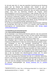 Beibringung einer psychologischen oder psychotherapeutischen Bescheinigung im Asylerstverfahren wird der Antragsteller grundsätzlich darauf hingewiesen, dass eine ärztliche Bescheinigung notwendig ist und vorgelegt werden muss. Dafür wird dem Antragsteller ein Hinweisblatt für Ärzte (D2210) mitgegeben, welches die rechtliche Grundlage für die Anforderungen an ärztliche Bescheinigungen gem. § 60a Abs. 2c S. 2 und 3 AufenthG enthält. Die Bescheinigung eines Psychologen oder eines Psychotherapeuten kann nur dann als Tatsachengrundlage in die Entscheidung einfließen, wenn ein Arzt sie sich dadurch zu eigen macht, dass er auf sie Bezug nimmt oder sie in seine ärztliche Bescheinigung integriert. In besonders gelagerten Ausnahmefällen im Asylerstverfahren, wenn eine wesentliche Lebensgefährdung besteht und diese auch unmittelbar droht, kann auch eine Bescheinigung eines Psychologen oder eines Psychotherapeuten eine weitere Sachaufklärungspflicht des Bundesamtes auslösen und im weiteren Verfahren eine Grundlage für die abschließende ärztliche Bescheinigung darstellen. Bestehen Zweifel an der Befugnis der ausstellenden Person, die Bezeichnung „Arzt“ oder „Ärztin“ zu führen, kann die für den Niederlassungsort der Person zuständige Ärztekammer beteiligt werden. Da zumindest zahlreiche niedergelassene Ärzte in Online-Registern der Ärztekammern verzeichnet sind, kann eine aufwändigere förmliche Beteiligung entfallen, wenn eine Online-Recherche in diesen Registern einen positiven Treffer ergibt. Das Einstiegsportal zu diesen Online-Portalen der Ärztekammern ist hier zu finden: http://www.bundesaerztekammer.de/service/arztsuche/ Form der ärztlichen Bescheinigung Die Form der Bescheinigung ist gesetzlich nicht vorgeschrieben; aus dem Begriff Bescheinigung geht allerdings hervor, dass es sich um einen Text handeln muss, deren Aussteller erkennbar ist. Dabei ist zu beachten, dass ärztliche Bescheinigungen derzeit üblicherweise noch in Papierform mit Praxisstempel und Unterschrift ausgestellt werden. Inhalt der ärztlichen Bescheinigung Diese ärztliche Bescheinigung soll insbesondere die tatsächlichen Umstände, auf deren Grundlage eine fachliche Beurteilung erfolgt ist, die Methode der Tatsachenerhebung, die fachlich-medizinische Beurteilung des Krankheitsbildes (Diagnose), den Schweregrad der Erkrankung, den lateinischen Namen oder die Klassifizierung der Abschiebungsverbote § 60 Abs. 5 u. 7 AufenthG 16/27 Stand 01/21