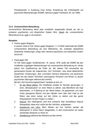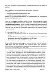 Polizeibeamten in Ausübung ihres Amtes; Erweiterung des Folterbegriffs auf psychische Misshandlungen (EGMR, Selmouni gegen Frankreich, 28. Juli 1999). 3.2.4 Unmenschliche Behandlung Unmenschliche Behandlung deckt jede vorsätzlich angewandte Gewalt ab, die zu schweren psychischen und körperlichen Qualen führt. Zweck der unmenschlichen Behandlung ist es, Leid zu verursachen. Beispiele: Yankov gegen Bulgarien In seinem Urteil im Fall Yankov gegen Bulgarien, 11.12.2003, beschreibt der EGMR unmenschliche Behandlung als eine Maßnahme, die „entweder tatsächliche körperliche Verletzungen zufügt oder intensive psychische und körperliche Qualen hervorruft”. Irland gegen GB Im Fall Irland gegen Großbritannien, 18. Januar 1978, stufte der EGMR die den Inhaftierten zugefügten Misshandlungen als unmenschliche Behandlung ein, lehnte jedoch ihre Qualifizierung als Folter ab. Bei diesem Fall verursachte der gemeinsame Einsatz der sogenannten „fünf Techniken“ zwar keine tatsächlichen körperlichen Verletzungen, aber zumindest intensive körperliche und psychische Qualen bei den diesen Techniken unterzogenen Personen und führten zu akuten psychischen Störungen während des Verhörs. Bei den „fünf Vernehmungstechniken“ handelte es sich um 1. An der Wand stehen: Die Inhaftierten werden für Stunden gezwungen, in einer „Stresssituation“ an einer Wand zu stehen, was Betroffene wie folgt beschreiben; „in X-Stellung an der Wand stehen, mit gespreizten und nach hinten gezogenen Beinen und den Händen hoch über dem Kopf an der Wand, was einen zwingt, auf den Zehen zu stehen und das ganze Körpergewicht mit den Fingern zu halten.”; 2. Kapuze: Den Gefangenen wird eine schwarze oder dunkelblaue Kapuze übergestülpt; diese wird, außer bei den Verhören, aufgelassen; 3. Aussetzung von Lärm: Beim Warten auf ihre Verhöre werden die Gefangenen in einem Raum festgehalten, in dem kontinuierlich ein lautes zischendes Geräusch zu hören ist; 4. Schlafentzug während des Wartens auf das Verhör; Subsidiärer Schutz (§ 4 Abs. 1 AsylG) 9/15 Stand 09/21