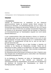 Beispiel: Ein rechtskräftig abgelehnter Asylbewerber befindet sich noch in Deutschland. In einer seiner Akten hatte ihm ein im Bundesgebiet wohnender Asylberechtigter aus der gemeinsamen Heimat brieflich und unter Angabe von Personalien und Adresse verschiedene Details bestätigt. Die Ehefrau des Erstgenannten reist später ein. Sie bringt eigene Asylgründe vor und beruft sich im Übrigen auf das von ihrem Ehemann Vorgebrachte. Aus ihrer eigenen Erstverfahrensakte sind zwar keine, unter 2.1 bis 2.2 fallende Ausschlusstatbestände ersichtlich. Die Entscheidung über ihr Asylbegehren kann dennoch nicht mittels Telearbeit gefertigt werden. In einer der Akten ihres Ehemannes ist nämlich der besagte Brief enthalten, der unter 2.1 fällt. 2.2 Korrekturlesen am Telearbeitsplatz Daneben ist grundsätzlich das Korrekturlesen von nicht für die Telearbeit freigegebenen Anhörungen und Bescheiden zulässig, die lediglich das Aktenzeichen, aber noch keine Kopfdaten (Name, Geburtsdatum, Wohnort usw.) der Asylbewerber enthalten. Bei entsprechenden Schreiben muss der bzw. die Entscheider/-in bei Weitergabe des Diktats an die Kanzlei sicherstellen, dass die Schreibkraft die Kopfzeile offenlässt (die Schriftstücke können in diesem Fall nicht in MARiS erstellt werden, da dort die Kopfdaten automatisch gesetzt werden). Das fertig gestellte Schriftstück wird von der Kanzlei an die Telearbeits- und die Amtsadresse gemailt. Der Nachtrag der Kopfdaten erfolgt im Amt von dem/der Entscheider/-in oder der SK-Koordinatorin. Enthält das Anhörungsprotokoll oder der Bescheid besonders sensible Daten, z.B. Zeugenbenennungen oder Angaben zu Dritten im Heimatstaat, die deren Verfolgung begründen könnten, ist auch das Korrekturlesen dieser Dokumente am Telearbeitsplatz unzulässig. Der/die Entscheider/-in hat dem Schreibdienst vorzugeben, dass solche Dokumente nicht an den Telearbeitsplatz übermittelt werden. Telearbeit 3/3 Stand 02/19