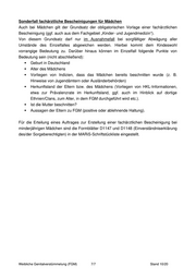 Sonderfall fachärztliche Bescheinigungen für Mädchen Auch bei Mädchen gilt der Grundsatz der obligatorischen Vorlage einer fachärztlichen Bescheinigung (ggf. auch aus dem Fachgebiet „Kinder- und Jugendmedizin“). Von diesem Grundsatz darf nur im Ausnahmefall bei sorgfältiger Abwägung aller Umstände des Einzelfalles abgewichen werden. Hierbei kommt dem Kindeswohl vorrangige Bedeutung zu. Darüber hinaus können im Einzelfall folgende Punkte von Bedeutung sein (nicht abschließend): Geburt in Deutschland Alter des Mädchens Vorliegen von Indizien, dass das Mädchen bereits beschnitten wurde (z. B. Hinweise von Jugendämtern oder Ausländerbehörden) Herkunftsland der Eltern bzw. des Mädchens (Vorliegen von HKL-Informationen, etwa zur Prävalenzrate im Herkunftsland, ggf. auch im Hinblick auf dortige Ethnien/Clans, zum Alter, in dem FGM durchgeführt wird etc.). Ist die Mutter beschnitten? Aussagen der Eltern zu FGM (positive oder ablehnende Haltung). Für die Erteilung eines Auftrages zur Erstellung einer fachärztlichen Bescheinigung bei minderjährigen Mädchen sind die Formblätter D1147 und D1148 (Einverständniserklärung des/der Sorgeberechtigten) in der MARiS-Schriftstückliste eingestellt. Weibliche Genitalverstümmelung (FGM) 7/7 Stand 10/20