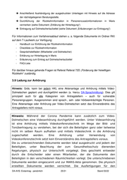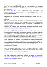Anschließend Aushändigung der ausgedruckten Unterlagen mit Hinweis auf die Adresse der nächstgelegenen Beratungsstelle. Durchführung der Rückkehrinformation in Personenzusatzinformationen in Maris vermerken (siehe Dokument „Erklärung der Hinterlegung“) Eintragung auf Dolmetscherlaufzettel (siehe Dokument „Erläuterungen zur Eintragung“) Für Informationen zum Verfahrensablauf stehen u. a. folgende Dokumente im Ordner RKI auf dem T-Laufwerk zur Verfügung: - Handbuch zur Einführung der Rückkehrinformation - Checkliste zur Rückkehrinformation - Gesprächsleitfaden (Mitarbeiter und Dolmetscher) - Erklärung zur Hinterlegung in Maris - Erläuterung zum Eintrag auf Dolmetscherlaufzettel - FAQ-Liste Für darüber hinaus gehende Fragen ist Referat Referat 72D „Förderung der freiwilligen Rückkehr“ zuständig. 3.9 Ladung zur Anhörung Hinweis: Grds. kann bei jedem HKL eine Aktenanlage und Anhörung mittels Video- Dolmetschen geplant und durchgeführt werden (s. hierzu DA-Sprachmittlung). Dies gilt prinzipiell auch für alle Kategorien von Antragstellern – auch für vulnerable Personengruppen. Ausgenommen sind sprach-, seh- oder hörbeeinträchtigte Personen. Eine Aktenanlage oder Anhörung per Video-Dolmetschen setzt das Einverständnis des Antragstellers nicht voraus. Hinweis: Während der Corona Pandemie kann zusätzlich zum Video- Dolmetschen eine Videoanhörung durchgeführt werden. Unter Videoanhörung ist eine Anhörung mittels Videokonferenztechnik im Wege der Bild- und Tonübertragung zu verstehen, bei der sich die Beteiligten ganz oder teilweise nicht im selben Raum aufhalten und mittels Videotechnik in die Anhörung zugeschaltet werden. Eine Anhörung unter Verwendung von Videokonferenztechnik setzt kein Einverständnis des Antragstellers voraus. Die zu unterzeichnenden Dokumente werden lokal ausgedruckt und jedem der Beteiligten, unter Beachtung der zum Gesundheitsschutz dienenden Regelungen, physisch zur Unterschrift vorgelegt. Dies geschieht entweder durch die Entscheider oder einen Mitarbeiter, der die Dokumente den Beteiligten in den verschiedenen Räumlichkeiten vorlegt. Die unterschriebenen Dokumente werden eingescannt und zur MARiS-Akte genommen. Die physisch erstellten Dokumente werden vernichtet. Die Ausfertigungen für den DA-AVS: Erstantrag - persönlich 25/31 Stand 03/22