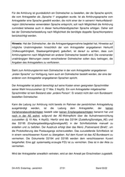 Für die Anhörung ist grundsätzlich ein Dolmetscher zu bestellen, der die Sprache spricht, die vom Antragsteller als „Sprache 1“ angegeben wurde. Ist als Anhörungssprache vom Antragsteller eine Sprache gewählt worden, die nicht einer der in seinem/r Herkunftsland/- region üblicherweise verwendeten Sprache entspricht, soll nach Möglichkeit die Anhörung zumindest teilweise auch in dieser herkunftslandtypischen Sprache erfolgen. Daher soll bei der Dolmetscherbestellung nach Möglichkeit die benötigte doppelte Sprachkompetenz berücksichtigt werden. Hinweis: Hat der Dolmetscher, der die Antragsentgegennahme begleitet hat, Hinweise auf mögliche Unstimmigkeiten hinsichtlich der vom Antragsteller angegebenen Herkunft (Volkszugehörigkeit, Staatsangehörigkeit) geäußert, ist darauf zu achten, dass zum Anhörungstermin nach Möglichkeit ein anderer Dolmetscher bestellt wird. Die voneinander unabhängigen Meinungen zweier verschiedener Dolmetscher sollen dazu beitragen, die Angaben des Antragstellers zu verifizieren. Steht zum Anhörungstermin kein Dolmetscher in der vom Antragsteller angegebenen „ersten Sprache“ zur Verfügung, kann auch ein Dolmetscher bestellt werden, der eine der anderen vom Antragsteller angegebenen Sprachen spricht. Der Antragsteller ist jedoch berechtigt auf seine Kosten einen geeigneten Sprachmittler seiner Wahl hinzuzuziehen (§ 17 Abs. 2 AsylG). Ein vom Antragsteller mitgebrachter Sprachmittler ist kein Beistand oder „andere Person“. Er ersetzt nicht den vom Bundesamt bestellten Dolmetscher. Kann die Ladung zur Anhörung nicht bereits im Rahmen der persönlichen Antragstellung ausgehändigt werden, ist die Ladung dem Antragsteller, der keinen Verfahrensbevollmächtigten bestellt oder keinen Empfangsberechtigten benannt hat und noch in der AE wohnt, aufgrund der AE-Wohnpflicht über die Aufnahmeeinrichtung zuzustellen (§ 10 Abs. 4 AsylG). Hierfür sind das D2194 (ZustellungSonstiges_AE) und das D2195 (EmpfangsbestätigungSonstigesAE) in der Schriftstückliste manuell zu erstellen und zu befüllen. Der Ausdruck erfolgt über das Menü „Postversand (Brief)“, um die Protokollierung des Postausgangs sicherzustellen. Das zuzustellende Schriftstück ist in einem verschlossenen Kuvert zu übergeben. Auf dem Kuvert ist das AZ-Bundesamt zu vermerken. Die Dokumente D2194 und D2195 werden dem verschlossenen Kuvert beigeheftet. Eine ggf. systemseitig erzeugte PZU ist zu vernichten. Dies ist in der Akte zu vermerken. Wird der Antragsteller anwaltlich vertreten, wird an den Anwalt per Einschreiben zugestellt. DA-AVS: Erstantrag - persönlich 27/31 Stand 03/22