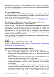 Bei postalischem Versand von Ladungen zur Anhörung, ist der Versand so zu terminieren, dass diese den Asylantragsteller bzw. dessen Rechtsanwalt mindestens 4 Werktage vor dem Anhörungstermin erreichen. 3.10 Aufenthaltsgestattung Im Hinblick auf die zu erstellende Aufenthaltsgestattung ist sicherzustellen, dass sowohl die Körpergröße als auch die Augenfarbe des Antragstellers in der Maske „Details Person“ erfasst ist. Ggf. sind diese Daten nachzuerfassen. Hinsichtlich der Erfassung und der Erstellung der AG siehe Kap. „Aufenthaltsgestattung“. 3.11 Erfassung von Zusatzinformationen bei Antragstellern, die in einer besonderen Aufnahmeeinrichtung untergebracht sind Gem. § 30a Abs. 1 Nr. 4 AsylG kann das Bundesamt das Asylverfahren beschleunigt durchführen, wenn der Antragsteller aus einem sicheren Herkunftsland kommt und in einer entsprechenden „besonderen Aufnahmeeinrichtung“ untergebracht ist. Wurde dem Bundesamt von der zust. ABH mitgeteilt, dass der Antragsteller in einer besonderen Aufnahmeeinrichtung untergebracht wurde, ist die Aktenzusatzinformation „Beschleunigtes Verfahren“ mit dem Status „Ja“ zu erfassen. Sofern die Mitteilung der ABH erst nach Aktenanlage eingeht, ist diese Zusatzinformation nachträglich in die Akte aufzunehmen. 4. AZR 4.1 Erfassung von Personaldokumenten im AZR s. hierzu die Ausführungen im Kapitel „Pässe und Originaldokumente/ Entgegennahme und Erfassung von Personaldokumenten“ 4.2 Erfassung der Religionszugehörigkeit im AZR Bzgl. der Erfassung der Religionszugehörigkeit im AZR ist folgendes zu beachten: Nach den gesetzlichen Regelungen des § 3 Abs. 1 Nr. 5 AZRG erfolgt die Speicherung der Religionszugehörigkeit im AZR nur mit dem Einverständnis des Antragstellers. Mittels Dolmetscher wird dem Antragsteller die Einverständniserklärung zur Erfassung der Religionszugehörigkeit im AZR (D0806) erklärt. Je nach Entscheidung des Antragstellers wird auf der Einverständniserklärung das entsprechende Kästchen angekreuzt und vom Antragsteller und Dolmetscher unterschrieben. Hat der Antragsteller im Rahmen der Antragstellung seine Zustimmung zur Speicherung seiner Religionszugehörigkeit im AZR gegeben, ist diese im AZR entsprechend zu erfassen. Dies erfolgt über das Kontextmenü „AZR Suche“ der entsprechenden Person und Wechsel in die Maske „AZR Person erfassen“. Über DA-AVS: Erstantrag - persönlich 28/31 Stand 03/22