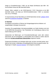 Anlage zur Einzelfallinformation 110501 aus der Maske Schriftstücke oder ABH / AE- Kommunikation heraus der ABH übermittelt werden. Hinweis: Sollen zusätzlich zu der XAVIA-Nachricht 110101 Dokumente an die ABH übermittelt werden, sind diese per XAVIA-Einzelfallinformation 110501 zu versenden (max. bis zu 4 Anhänge). Im Zusammenhang mit der Übermittlung von XAVIA-Nachrichten sind der Leitfaden XAVIA sowie die Kurzübersicht XAusländer zu beachten. 6. Scannen Grundsätzlich sind ämtliche im Rahmen der Antragsentgegennahme erhaltenen und ausgehändigten Unterlagen einzuscannen. Ausnahme: Die ausgehändigten Informationsmerkblätter zum Dublin-Verfahren sind nicht in die MARiS-Akte einzuscannen. Das Protokollieren der Aushändigung erfolgt auf der Dublin-Erklärung (D1971-D2016). Insbesondere bei Belehrungen und Einverständniserklärungen sowie allen anderen Dokumenten, die vom Antragsteller zu unterschreiben sind, ist darauf zu achten, dass die Dokumente mit den erforderlichen Unterschriften eingescannt werden. Eingescannte Schriftsätze und Unterlagen dürfen grds. erst dann vernichtet werden, wenn diese auf die korrekte, vollständige und qualitätsgesicherte Scannung geprüft wurden. Die Regelungen im Kapitel „Scannen-Indizieren“ sind zwingend zu beachten. DA-AVS: Erstantrag - persönlich 32/31 Stand 03/22