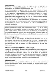 5. AZR-Meldung Grundsätzlich erfolgt keine AZR-Erstmeldung für die Fälle des § 14 Abs. 2 AsylG durch das Bundesamt. Die Erstmeldung erfolgt hier durch die ABH. Ist die Erstmeldung des Antragstellers durch die ABH bereits erfolgt, ist im bereits bestehenden Datensatz in der AZR-Folgemeldung "Asylverfahren" die Asylantragstellung mit dem Datum des Posteingangs des Asylantrages beim Bundesamt zu erfassen. Außerdem ist das im AZR erfasste Datum zur Ersteinreise mit dem in MARiS gespeicherten Datum abzugleichen und ggf. das in in MARiS vorläufig erfasste Ersteinreisedatum dem im AZR erfassten Datum anzupassen. Für die Fälle, in denen die ABH um Erstmeldung des Antragstellers im AZR gebeten wurde, ist nach Ablauf von 2 Wochen zu prüfen, ob die Erstmeldung erfolgt ist und ggf. die Asylantragstellung zu erfassen sowie die Daten im AZR und in MARiS bzgl. der Ersteinreise abzugleichen. Hinweis: Erscheint der Ausländer nach Entlassung aus einer in § 14 Abs. 2, Satz 2 AsylG genannten Einrichtung (z.B. Haft oder Krankenhaus) in der AE / beim Bundesamt und es besteht noch eine AE-Wohnpflicht, so kann das Bundesamt die Erstmeldung im AZR vornehmen, soweit dies noch nicht durch die ABH erfolgt ist. Das gleiche gilt auch für die Fälle, in denen der Ast. nach Haftentlassung vor der Entscheidung untertaucht. 6. Aufenthaltsgestattung Grundsätzlich ist in den Fällen des § 14 Abs. 2 AsylG für die Ausstellung einer AG die ABH zuständig. Eine Ausnahme gilt lediglich, wenn die in § 14 Abs. 2 AsylG genannten Voraussetzungen entfallen, noch keine Entscheidung des Bundesamtes ergangen ist und somit Wohnpflicht in einer AE besteht. (z.B. nach Entlassung aus der Haft oder Krankenhaus). 7. Belehrungspflicht nach § 14 Abs. 1 Satz 2 AsylG Entgegen der Verfahrensweise bei persönlicher Erstantragstellung, wonach die Belehrung nach § 14 Abs. 1 AsylG zusammen mit der Belehrung über die Pflicht zur Asylantragstellung nach § 23 Abs. 2 AsylG durch die AE erfolgt, ist im Falle der schriftlichen Antragstellung die Belehrung durch das Bundesamt nachzuholen. Dies erfolgt zusammen mit der Belehrung nach § 10 AsylG. Die Belehrungen nach § 14 Abs. 1 AsylG werden mit den übrigen Unterlagen automatisch erstellt und ausgedruckt. 8. Ed-Behandlung Die ed-Behandlung findet grundsätzlich im Rahmen der Anhörung statt. Sofern keine Anhörung durchgeführt wird, ist/sind der/die Antragsteller mit Dokument D0075 zur ed- Behandlung zu laden. Erstantrag – schriftlich 5/8 Stand 03/22