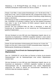 Weiterleitung in die BK-Ablage/RK-Ablage eine Abfrage, ob der Datensatz beim EURODAC-Zentralsystem markiert werden soll. Dies ist zu bejahen. Hinweis: In den Fällen, in denen positive Entscheidungen zu Art. 16a GG oder § 3 Abs. 1 AsylG oder § 4 Abs. 1nach § 73 AsylG widerrufen oder zurückgenommen werden, ist die im Rahmen des Verfahrensabschlusses der positiven Entscheidung erfolgte Markierung wieder zu demarkieren. Die Markierung von Daten zu Drittstaatsangehörigen oder Staatenlosen ist gemäß Art. 18 Abs. 3 EURODAC II-VO ebenfalls zu entfernen, wenn der ihnen gewährte Schutzstatus nach Artikel 14 oder 19 der Richtlinie 2011/95/EU aberkannt, beendet oder eine Verlängerung abgelehnt wird. Demnach sind auch EURODAC-Treffer der Fälle zu demarkieren, in denen die Anerkennung der Asylberechtigung und die Zuerkennung der Flüchtlingseigenschaft gemäß § 72 AsylG erlischt. Wird dem Bundesamt von einer ABH oder einem Mitgliedsstaat mitgeteilt, dass ein von Deutschland als Asylbewerber in EURODAC eingestellter Ausländer in einem anderen Mitgliedsstaat als Asylberechtigter anerkannt ist, ist dies per Mail an das Dublin-Referat zu melden. Hinweis: Die oben beschriebene Verfahrensweise gilt für Personen ab 14 Jahren. Bei Kindern von 6 bis unter 14 Jahre, die ab 01.04.2021 ed behandelt werden, erfolgt keine Markierung bzw. Demarkierung von Datensätzen. 7. Löschung auf Grund Erwerb der Staatsangehörigkeit eines Mitgliedsstaates Gem. Art. 7 EURODAC-VO sind die Daten von Personen zu löschen, die die deutsche Staatsangehörigkeit oder die Staatsangehörigkeit eines anderen Mitgliedsstaates erworben haben. Wird dem Bundesamt von einer ABH oder einem Mitgliedsstaat mitgeteilt, dass ein von Deutschland als Asylbewerber in EURODAC eingestellter Ausländer die deutsche Staatsangehörigkeit oder die Staatsangehörigkeit eines anderen Mitgliedsstaates angenommen hat, werden im Rahmen der durchzuführenden Aktenlöschung die EURODAC-Daten des Ausländers mitgelöscht. DA-AVS: EURODAC 6/6 Stand 04/22