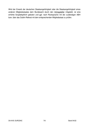 Wird der Erwerb der deutschen Staatsangehörigkeit oder die Staatsangehörigkeit eines anderen Mitgliedsstaates dem Bundesamt durch den Antragsteller mitgeteilt, ist eine erhöhte Sorgfaltspflicht geboten und ggf. nach Rücksprache mit der zuständigen ABH bzw. über das Dublin-Referat mit dem entsprechenden Mitgliedsstaat zu prüfen. DA-AVS: EURODAC 7/6 Stand 04/22