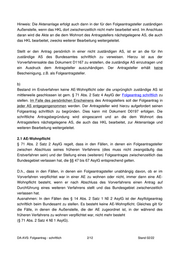 Dienstanweisung für das AVS Folgeantrag - persönlich 1. Prüfung der Wirksamkeit der Antragstellung Ein Folgeantrag kann grundsätzlich nur dann gestellt werden, wenn das Vorverfahren unanfechtbar abgelehnt wurde, oder der Antragsteller den Antrag des Vorverfahrens zurückgenommen hat. Ausnahme: Wurde im Erstverfahren beispielsweise subsidiärer Schutz nach § 4 Abs. 1 AsylG zuerkannt, der Antrag auf Feststellung der Flüchtlingseigenschaften nach § 3 Abs. 1 AsylG jedoch abgelehnt, kann ebenfalls ein Folgeantrag gestellt werden. Ein wirksamer Folgeantrag kann auch gestellt werden, wenn im Erstverfahren nur noch eine Entscheidung zu § 60 Abs. 5 oder 7 AufenthG aussteht. Hinweis: Wurde das Erstverfahren wegen Nichtbetreiben nach § 33 AsylG eingestellt und der Antragsteller erscheint erst nach Ablauf von neun Monaten nach Einstellung des Verfahrens und stellt einen Antrag auf Wiederaufnahme seines Erstverfahrens, ist die Fortführung des Erstverfahrens nicht möglich (s. hierzu auch die Ausführungen im Kapitel „Fortführungsantrag“. In diesen Fällen ist ein Folgeantrag mit der Zusatzinformation „Fortführung als Folgeantrag“ anzulegen. Gleiches gilt, wenn ein nach Nichtbetreiben eingestelltes Verfahren wieder aufgenommen (Fortführungsantrag) und anschließend wegen Nichtbetreiben wiedereingestellt wurde. Hierbei spielt die Neun-Monatsfrist keine Rolle. 2. Zuständigkeit a) War der Folgeantragsteller im Erstverfahren verpflichtet in einer AE zu wohnen und besteht die der AE zugeordnete AS noch, so hat er den Folgeantrag gem. § 71 Abs. 2 Satz 1 AsylG persönlich bei der dortigen AS zu stellen. Falls der Antragsteller während des Asylverfahrens mehreren Aufnahmeeinrichtungen zugeordnet war, können auch verschiedene Dienststellen zuständig sein. Meldet sich der Antragsteller bei einer der zuständigen Außenstellen, ist der Antrag dort entgegenzunehmen. DA-AVS: Folgeantrag - persönlich 1/14 Stand 02/22
