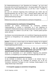 Der Wiederaufgreifensantrag ist nach Überprüfung der Unterlagen - ggf. durch einen Entscheider oder eine hierfür beauftragte Person - als wirksam gestellt mit der Folge einer Aktenanlage eines Wiederaufnahmeverfahrens zu § 60 Abs. 5 oder 7 AufenthG zu erachten. Nur wenn der unwirksame Folgeantrag keine Ausführungen dazu enthält, dass die Abschiebungsverbote des § 60 Abs. 5 oder 7 AufenthG geprüft werden sollen oder Gefahren i.S.d. § 60 Abs. 5 oder 7 AufenthG geltend gemacht werden, ist kein Wiederaufnahmeantrag anzulegen. Näheres hierzu siehe unter „Verfahrensweise bei unwirksamer Antragstellung“. 5. Verfahrensweise bei unwirksamer Antragstellung Hinsichtlich der weiteren Verfahrensweise bei unwirksamer schriftlicher Folgeantragstellung ist zunächst zu unterscheiden, ob in dem Folgeantrag ein ausdrücklicher Wiederaufnahmeantrag zu Abschiebungsverboten nach § 60 Abs. 5 oder 7 AufenthG gestellt bzw. Gefahren i.S.d § 60 Abs. 5 oder 7 AufenthG geltend gemacht werden oder nicht. Des Weiteren muss berücksichtigt werden, ob im schriftlichen Folgeantrag das persönliche Erscheinen zur Antragsstellung in der zuständigen Außenstelle angekündigt wird oder nicht. Hinweis: Im Anschluss an dieses Kapitel ist eine Übersicht eingefügt, die die möglichen Fallkonstellationen und die weitere Verfahrensweise bei unwirksamer schriftlicher Folgeantragstellung grafisch darstellt. 5.1 Unwirksamer schriftlicher Folgeantrag, in dem ein ausdrücklicher Wiederaufnahmeantrag zu Abschiebungsverboten nach § 60 Abs. 5 oder 7 AufenthG gestellt wird bzw. Gefahren geltend gemacht werden. Hierbei ist zu unterscheiden, ob in dem schriftlichen Folgeantrag das persönliche Erscheinen zur Antragstellung in der zuständigen Außenstelle gekündigt wird oder nicht. 5.1.1 mit Ankündigung des persönlichen Erscheinens Ist dem Schriftsatz zu entnehmen, dass der Ausländer in den nächsten Tagen zur persönlichen Antragstellung in der zuständigen AS erscheinen wird, ist die zum Vorverfahren referenzierte Postmappe mit einer 2-wöchigen Wiedervorlagefrist in die „Ablage Wiedervorlage“ weiterzuleiten. Antragsteller erscheint zur persönlichen Antragstellung DA-AVS: Folgeantrag - schriftlich 7/12 Stand 02/22