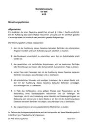 Dienstanweisung für das AVS Mitwirkungspflichten Allgemeines Ein Ausländer, der einen Asylantrag gestellt hat, ist nach § 15 Abs. 1 AsylG verpflichtet, bei der Aufklärung des Sachverhaltes mitzuwirken. Dies gilt auch für schriftlich gestellte Erstanträge sowie für schriftlich oder persönlich gestellte Folgeanträge. Die Mitwirkungspflicht umfasst insbesondere 1. den mit der Ausführung dieses Gesetzes betrauten Behörden die erforderlichen Angaben mündlich und nach Aufforderung auch schriftlich zu machen; 2. das Bundesamt unverzüglich zu unterrichten, wenn ihm ein Aufenthaltstitel erteilt worden ist; 3. den gesetzlichen und behördlichen Anordnungen, sich bei bestimmten Behörden oder Einrichtungen zu melden oder dort persönlich zu erscheinen, Folge zu leisten; 4. seinen Pass oder Passersatz den mit der Ausführung dieses Gesetzes betrauten Behörden vorzulegen, auszuhändigen und zu überlassen; 5. alle erforderlichen Urkunden und sonstigen Unterlagen, die in seinem Besitz sind, den mit der Ausführung dieses Gesetzes betrauten Behörden vorzulegen, auszuhändigen und zu überlassen; 6. im Falle des Nichtbesitzes eines gültigen Passes oder Passersatzes an der Beschaffung eines Identitätspapiers mitzuwirken und auf Verlangen alle Datenträger, die für die Feststellung seiner Identität und Staatsangehörigkeit von Bedeutung sein können und in deren Besitz er ist, den mit der Ausführung dieses Gesetzes betrauten Behörden vorzulegen, auszuhändigen und zu überlassen; 7. die vorgeschriebenen erkennungsdienstlichen Maßnahmen zu dulden. Im Rahmen der Antragsentgegennahme wird der Antragsteller auf diese Mitwirkungspflicht in der Erst- bzw. Folgebelehrung hingewiesen. DA-AVS: Mitwirkungspflichten 1/2 Stand 07/21