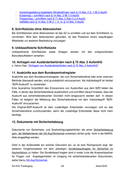 - Asylantragstellung begleiteter Minderjähriger nach § 14 Abs. 2 S. 1 Nr. 3 AsylG - Erstantrag – schriftlich nach § 14 Abs. 2 Nr. 1-3 AsylG - Folgeantrag – schriftlich nach § 71 Abs. 2 Satz 3 u.4 AsylG - Haftfälle nach § 14 Abs. 2 Nr. 2 i. V. m. § 14 Abs. 3 AsylG 8. Schriftstücke ohne Aktenzeichen Bei Schriftstücken ohne Aktenzeichen ist das AZ zu ermitteln und auf dem Schriftstück zu vermerken. Wird kein Aktenzeichen gefunden, ist das Poststück einem beauftragten Mitarbeiter zur weiteren Bearbeitung vorzulegen. 9. Unklassifizierte Schriftstücke Unklassifizierte Schriftstücke sowie Anlagen werden mit den entsprechenden Barcodeaufklebern versehen. 10. Anfragen von Ausländerbehörden nach § 72 Abs. 2 AufenthG s. hierzu Kap. "Anfragen von Ausländerbehörden nach § 72 Abs. 2 AufenthG" 11. Auskünfte aus dem Bundeszentralregister Auskünfte aus dem Bundeszentralregister, die vom Sicherheitsreferat oder einer externen Behörde übersandt werden, sind grundsätzlich einzuscannen. Als Indizierbegriff ist hierbei "BZR-Auskunft" zu verwenden. Eine Ausnahme hinsichtlich des Einscannens von Auskünften aus dem BZR bilden die Fälle, in denen das Sicherheitsreferat ausdrücklich und schriftlich darauf hinweist, dass die Auskunft aus sicherheitsrelevanten Gründen nicht eingescannt werden darf. In diesen Fällen ist lediglich die Mitteilung des Sicherheitsreferat mit dem Indizierbegriff "BZR- Auskunft" einzuscannen. Die Original-BZR-Auskunft ist dem zuständigen Entscheider vorzulegen und an das Sicherheitsreferat zurückzusenden, wenn der zuständige Entscheider diese nicht mehr benötigt. 12. Dokumente mit Sicherheitsbezug Dokumente von Sicherheits- und Strafverfolgungsbehörden die einen Sicherheitsbezug gem. der Meldekriterien der DA-Asyl/Sicherheit aufweisen dürfen grds. nicht in die MARiS- Akte eingepflegt werden. Geht in der Außenstelle ein solches Dokument ein, so ist eine Rücksprache bzgl. der weiteren Vorgehensweise mit dem jeweiligen Sonderbeauftragten für Sicherheit im Asylverfahren zu halten. Die Sonderbeauf-tragten sind in erster Linie die Ansprechpartner für Fragen und Angelegenheiten im Umgang mit sicherheitsrelevanten Dokumenten, siehe hierzu DA-Asyl/Sicherheit. DA-AVS: Posteingang 4/6 Stand 03/22