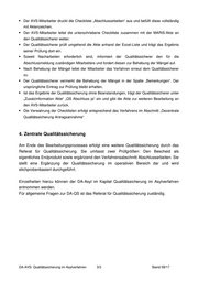 Die komplette DA-Qualitätssicherung im Asylverfahren ist in der DA-Asyl einsehbar. Dort befinden sich auch Hinweise bzgl. des Zugriffs auf die benötigten Checklisten, die Benennung der Qualitätssicherer und dessen Zugriffsrechte sowie eine Beschreibung zum Ablauf der Prüfung im Referat für Qualitätssicherung. 2. Dezentrale Qualitätssicherung Antragsannahme Das System ermittelt per Zufallsgenerator die zu prüfende Akte und meldet die Akte an den für die Antragsannahme zuständigen Qualitätssicherer. Der Qualitätssicherer prüft umgehend die in seinem Arbeitskorb befindliche Akte anhand der entsprechenden Checkliste und trägt das Ergebnis seiner Prüfung dort ein. Soweit Nacharbeiten erforderlich sind, informiert der Qualitätssicherer den Mitarbeiter der die Akte angelegt hat und fordert diesen zur Behebung der Mängel auf. Nach Behebung der Mängel leitet der Mitarbeiter das Verfahren erneut dem Qualitätssicherer zu. Der Qualitätssicherer vermerkt die Behebung der Mängel in der Checklisten-Spalte „Bemerkungen“. Der ursprüngliche Eintrag zur Prüfung bleibt erhalten. Ist das Ergebnis der Qualitätssicherung ohne Beanstandungen, trägt der Qualitätssicherer unter „Zusatzinformation Akte“ „QS AVS ja“ ein und gibt die Akte zur weiteren Bearbeitung wieder ab. Sämtliche Arbeitsvorgänge sind, nach Eingang der Akte beim Qualitätssicherer, jeweils am gleichen Arbeitstag abzuschließen. Die Checklisten des Qualitätssicherers werden von diesem auf dem dafür vorgesehenen Laufwerk abgelegt. Aufgrund derzeit bestehender technischer Einschränkungen ist es nicht möglich, dass die zu prüfenden Akten im laufenden Prozess ermittelt werden. Vielmehr kann dieses nur mit Bezug auf die am Vortag angelegten Akten erfolgen, was dazu führt, dass vorübergehend der Komplex der Aktenanlage nur nachträglich geprüft und im Bedarfsfall Korrekturen vom zuständigen Qualitätssicherer nachträglich veranlasst werden müssen. 3. Dezentrale Qualitätssicherung Abschlussarbeiten Vorbemerkung: Ein Versand der Abschlussmitteilung ist erst nach einer Qualitätssicherung ohne Beanstandung zulässig. Auch hier ermittelt das System per Zufallsgenerator die zu prüfenden Akten und meldet diese an den für die Qualitätssicherung zuständigen Mitarbeiter, Der Qualitätssicherer setzt den für die Abschlussarbeiten zuständigen AVS-Mitarbeiter über die anstehende Qualitätssicherung in Kenntnis. DA-AVS: Qualitätssicherung im Asylverfahren 2/3 Stand 09/17