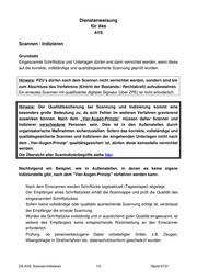 Dienstanweisung für das AVS Scannen / Indizieren Grundsatz Eingescannte Schriftsätze und Unterlagen dürfen erst dann vernichtet werden, wenn diese auf die korrekte, vollständige und qualitätsgesicherte Scannung geprüft wurden. Hinweis: PZU’s dürfen nach dem Scannen nicht vernichtet werden, sondern sind bis zum Abschluss des Verfahrens (Eintritt der Bestands-/ Rechtskraft) aufzubewahren. Ein erneutes Scannen mit qualifizierter digitaler Signatur (über ZPE) ist nicht erforderlich. Hinweis: Der Qualitätssicherung bei Scannung und Indizierung kommt eine besonders große Bedeutung zu, da sich Fehler im weiteren Verfahren gravierend auswirken können. Nach dem „Vier-Augen-Prinzip“ müssen daher Scanner und Indizierer verschiedene Personen sein. Dies ist in den Außenstellen durch organisatorische Maßnahmen sicherzustellen. Sofern das korrekte, vollständige und qualitätsgesicherte Scannen und Indizieren der eingehenden Unterlagen nicht nach dem „Vier-Augen-Prinzip“ qualitätsgesichert ist, dürfen diese keinesfalls vernichtet werden. Die Übersicht aller Scanindizierbegriffe siehe hier. Nachfolgend ein Beispiel, wie in Außenstellen, in denen es keine eigene Indizierstelle gibt, nach dem "Vier-Augen-Prinzip" verfahren werden kann: - Nach dem Einscannen werden Schriftücke tagesaktuell (Tagesstapel) abgelegt. - Der Empfänger eines Schriftstückes erhält die Scanmappe und prüft die Qualität des eingescannten Schriftstückes. - Sofern keine vollständige oder qualitativ ausreichende Scannung erfolgt ist, veranlasst der Empfänger die erneute Scannung. - Wurden die Schriftstücke vollständig und in ausreichend guter Qualität eingescannt, ist seitens des Empfängers keine entsprechende Rückmeldung an den Einscanner erforderlich. - Prüfung, ob personenbezogene Daten unbeteiligter Dritter, z.B. Zeugen, Mitangeklagte in Strafverfahren etc. datenschutzkonform geschwärzt wurden. DA-AVS: Scannen/Indizieren 1/2 Stand 07/21