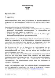 Dienstanweisung für das AVS Sprachbiometrie 1. Allgemeines Bei der Sprachbiometrie handelt es sich um ein Verfahren, bei dem durch die Erkennung der gesprochenen Sprache und Dialekte eine Zuordnung zur regionalen Herkunft möglich ist. Ziel der sprachbiometrischen Herkunftslandbestimmung ist die Schaffung einer frühzeitig unterstützenden, nicht obligatorischen, im Asylverfahren einsetzbaren sprachbasierten Herkunftsverifikation als Assistenzsystem zur Glaubhaftmachung der Angaben von Antragstellern. die Erhöhung der Validität der Asylentscheide durch verbesserte Plausibilisierung der Antragstellerangaben auf Basis der Herkunftslandprognostik. Die Sprachbiometrie soll zum frühestmöglichen Zeitpunkt erfolgen, idealerweise bereits im Rahmen der Erstregistrierung. Ist die Sprachbiometrie im Rahmen der Erstregistrierung nicht möglich oder nicht erfolgt, ist dies spätestens bei Antragstellung in der für die Antragsentgegennahme zuständigen Außenstelle des Bundesamtes vorzunehmen. Die Sprachbiometrie darf nur zur Bestimmung des Herkunftsstaates oder der Herkunftsregion erfolgen und kommt im Rahmen der Erstregistrierung bzw. der Antragsentgegennahme zum Einsatz, wenn die Herkunft des Antragstellers nicht zweifelsfrei festgestellt werden kann. Dies ist z. B. dann der Fall, wenn der Antragsteller seine Identität bzw. seine Herkunft nicht durch die Vorlage eines gültigen Passes, Passersatz oder eines anderen Identitätspapieres zweifelsfrei belegen kann oder in denen ein vorgelegtes Identitätspapier Fälschungsmerkmale aufweist (siehe hierzu vergleichend DA Asyl Abschnitt „Urkundenprüfung“). Die sprachbiometrische Analyse erfolgt bei Antragstellern ab vollendetem 14. Lebensjahr. Hinweis: Eine Sprachbiometrie entfällt, wenn im Rahmen des AZR- Registerabgleichs ein VIS-Treffer angezeigt wird und ein Visum erteilt wurde. Die dort genannten Personalien sind als Führungspersonalien zu verwenden (siehe Kapitel Registerabgleiche). DA-AVS: Sprachbiometrie 1/4 Stand 07/21