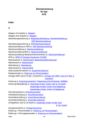 Dienstanweisung für das AVS Index A Ablagen mit Ausleihe (s. Ablagen) Ablagen ohne Ausleihe (s. Ablagen) Abschiebungsandrohung (s. Bestandskraftmitteilung, Rechtskraftmitteilung, AZR-Abschlussmeldung) Abschiebungsanordnung (s. AZR-Abschlussmeldung) Abschlussmeldung im AZR (s. AZR-Abschlussmeldung) Abschlussmitteilung (s. Abschlussmitteilung) Abschlussmitteilung BKA (s. Abschlussmitteilung) Abschlussmitteilung Wiederaufnahmeverfahren (s. Abschlussmitteilung) AFIS (s. INPOL-E-Gruppen-Ausdrucke (VS-NfD) Aktenausdruck (s. Akteneinsicht, Bestandskraftüberwachung) Akteneinsicht (s. Akteneinsicht) Aktenteilung (s. Aktenteilung) Aktenversand (s. Akteneinsicht) Aktenzusatzinformationen (s. Zusatzinformationen) Aliaspersonalien (s. Änderung von Personendaten) Anfragen ABH nach § 72 Abs. 2 AufenthG (s. Anfragen der ABH’n nach § 72 Abs. 2 AufenthG) Anhörung (s. Erstantrag-persönlich, Folgeantrag ohne Erstantrag, Haftfälle) Anhörung Minderjährige (s. Asylantrag minderj. Kinder nach § 14a AsylG, Asylanträge minderj. Kinder ohne Begleitung, Asylanträge minderj. Kinder mit Begleitung) Ankunftsnachweis (s. Ankunftsnachweis) Anlaufbescheinigung (s. Ankunftsnachweis)) Anschriftenermittlung (s. Anschriftenermittlung) Anschriftenmitteilung (s. Anschriftenmitteilung) Antragsfiktion nach § 14a AsylG (s. Asylantrag minderj. Kinder nach § 14a AsylG) Antragsrücknahme (s. Antragsrücknahme) Änderung v. Personendaten (s. Änderung von Personendaten) Änderung v. Führungspersonalien (s. Änderung von Personendaten) Index 1/8 Stand 04/22