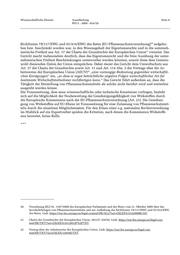 Wissenschaftliche Dienste Ausarbeitung Seite 8 WD 5 - 3000 - 034/20 Richtlinien 79/117/EWG und 91/414/EWG des Rates (EU-Pflanzenschutzverordnung) aufgeho- 20 ben bzw. beschränkt worden war, in den Wesensgehalt der Eigentumsrechte und in die unterneh- merische Freiheit aus Art. 17 der Charta der Grundrechte der Europäischen Union verneint. Das 21 Gericht macht insbesondere deutlich, dass das Eigentumsrecht und die freie Ausübung der unter- nehmerischen Freiheit Beschränkungen unterworfen werden könnten, soweit diese dem Gemein- wohl dienenden Zielen der Union entsprächen. Dabei räumt das Gericht dem Umweltschutz aus Art. 37 der Charta der Grundrechte sowie Art. 11 und Art. 114 Abs. 3 der Vertrags über die Ar- beitsweise der Europäischen Union (AEUV) „eine vorrangige Bedeutung gegenüber wirtschaftli- 22 chen Erwägungen“ ein, „so dass er sogar beträchtliche negative Folgen wirtschaftlicher Art für bestimmte Wirtschaftsteilnehmer rechtfertigen kann.“ Das Gericht führt außerdem an, dass die Tätigkeit der Herstellung von Pflanzenschutzmitteln als solche nicht berührt wird und weiterhin ausgeübt werden könne. Die Voraussetzung, dass neue wissenschaftliche oder technische Kenntnisse vorliegen, bezieht sich auf die Möglichkeit der Neubewertung der Genehmigungsfähigkeit von Wirkstoffen durch die Europäische Kommission nach der EU-Pflanzenschutzverordnung (Art. 21). Die Genehmi- gung von Wirkstoffen auf EU-Ebene ist Voraussetzung für eine Zulassung von Pflanzenschutzmit- teln durch die einzelnen Mitgliedsstaaten. Für den Erlass einer o.g. nationalen Rechtsverordnung im Hinblick auf ein Exportverbot spielen die Kriterien, nach denen die Kommission Wirkstoffe neu bewertet, keine Rolle. *** 20 Verordnung (EG) Nr. 1107/2009 des Europäischen Parlaments und des Rates vom 21. Oktober 2009 über das Inverkehrbringen von Pflanzenschutzmitteln und zur Aufhebung der Richtlinien 79/117/EWG und 91/414/EWG des Rates, Link: https://eur-lex.europa.eu/legal-content/DE/ALL/?uri=CELEX%3A32009R1107. 21 Charta der Grundrechte der Europäischen Union, 2012/C 326/02, Link: https://eur-lex.europa.eu/legal-con- tent/DE/TXT/?uri=CELEX%3A12012P%2FTXT. 22 Vertrag über die Arbeitsweise der Europäischen Union, Link: https://eur-lex.europa.eu/legal-con- tent/EN/TXT/?uri=CELEX:12016E/TXT.