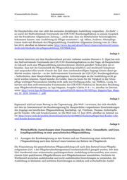 Wissenschaftliche Dienste Dokumentation Seite 5 WD 9 - 3000 - 024/16 Gesetzentwurf der Bundesregierung, Entwurf eines Gesetzes zur Reform der Pflegeberufe (Pflege- berufereformgesetz – PflBRefG) in: BT-Drs. 18/7823 vom 9. März 2016, Auszug S. 1-5, 7-8, 14-15, 19-25, 49-62, 70, 74-83, 98-101 (hier: S. 1-2, 7-8, 14-15). Anlage 1 Nach Ansicht von Bundesgesundheitsminister Gröhe wird durch die geplante Reform Haupt- schülern der Zugang zur Pflegeausbildung erleichtert, vgl. „Generalisten gefragt – PFLEGE, Die Regierung setzt große Hoffnungen in eine Ausbildungsreform“, in: Das Parlament vom 21. März 2016. Anlage 2 Der Arbeitgeberverband Pflege vertritt die Auffassung, das in § 11 Abs. 1 Nr. 2 b und c des Ent- wurfs vorgesehene zusätzliche Vorbereitungsjahr im Vorfeld der Ausbildung zur Pflegefachfrau oder zum Pflegefachmann, beispielsweise als Hilfskraft in einer Pflegeeinrichtung, benachteiligte die Hauptschüler und damit die Mehrheit an Bewerbern, die eine Ausbildung mit dem Ziel auf- nehmen wollten, in der Altenpflege zu arbeiten. Dies sei angesichts des Umstandes, dass in den nächsten Jahrzehnten mehr als 4,5 Millionen Pflegebedürftige zu versorgen seien und sehr viele gut motivierte Fachkräfte benötigt würden, nicht hinnehmbar. Einer Umfrage innerhalb der Mit- gliedsunternehmen des Arbeitgeberverbands Pflege zufolge, verfügten derzeit mehr als 55 Pro- zent aller Auszubildenden in der Altenpflege über einen Hauptschulabschluss, während 29 Pro- zent aller Bewerber einen Realschulabschluss und 16 Prozent eine „gymnasiale Reife“ vorweisen könnten. Die Bundesregierung schütte das „Kind mit dem Bade“ aus, wenn sie jungen Menschen- mit einem guten Hauptschulabschluss gewissermaßen ein „Strafjahr“ zur Vorbereitung auf eine Ausbildung auferlege. Zur Prüfungsreife würde die Mehrheit aller Bewerber damit erst nach ins- gesamt vier Jahren gelangen. Derzeit würden in der dreijährigen Altenpflegeausbildung 70.000 junge Menschen ausgebildet. Dieser sehr positive Trend bei den Ausbildungszahlen in der Alten- pflege könnte – so befürchtet der Arbeitgeberverband Pflege – durch das geplante Pflegeberufsge- setz „dramatisch gestoppt“ werden. Den Unternehmen würden damit wesentlich höhere Kosten und Ausbildungszeiten aufgebürdet und viele Schulabgänger „willentlich abgeschreckt“. Falls die im Gesetzentwurf vorgesehenen Regelungen der Zugangsvoraussetzungen zur beruflichen Pflegeausbildung für Hauptschüler ohne weitreichende Korrekturen in Kraft träten, sei mit sin- kenden Ausbildungszahlen zu rechnen. Das aber wäre – so der Arbeitgeberverband Pflege – für die Altenpflege in Deutschland „eine Katastrophe“, vgl. Arbeitgeberverband Pflege, Bundesregie- rung erschwert Hauptschülern die Pflegeausbildung, Pressemitteilung vom 1. Dezember 2015, abrufbar im Internet unter: http://www.presseportal.de/pm/102258/3190896. Anlage 3 Auch der Stellvertretende Vorsitzende der CDU/CSU-Bundestagsfraktion, MdB Dr. Georg Nüßlein, und der pflegepolitische Sprecher der Arbeitsgruppe Gesundheit der CDU/CSU-Bundes- tagsfraktion, MdB Erwin Rüddel, befürchten einem Bericht der Frankfurter Allgemeinen Zeitung vom 23. Oktober 2015 zufolge, dass wachsende Anforderungen Hauptschülern den Zugang zur Pflegeausbildung versperren könnten. In der Krankenpflege hätten schon 70 Prozent der Auszu- bildenden Abitur, in der Altenpflege nur 30 Prozent. Nach den Plänen der Bundesregierung sei