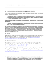 Wissenschaftliche Dienste Dokumentation Seite 5 WD 4 - 3000 - 141/19 2. Schwellenwerte für Güterhändler bei der Entgegennahme von Bargeld Nach Artikel 2 Abs. 1 Nr. 3 Buchstabe e der Vierten Geldwäsche-Richtlinie der EU gilt die Richt-2 linie für folgende Verpflichtete: „…other persons trading in goods to the extent that payments are made or received in cash in an amount of EUR 10 000 or more, whether the transaction is carried out in a single operation or in several operations which appear to be linked; …“ Erwägungsgrund 6 der Richtlinie gibt den Mitgliedstaaten das Recht, niedrigere Schwellenwerte anzuwenden. „… Member States should be able to adopt lower thresholds, additional general limitations to the use of cash and further stricter provisions.“ Im Folgenden wurden Staaten, die ohnehin über Bargeldbeschränkungen verfügen, nicht weiter untersucht. Folgende Staaten ohne Bargeldbegrenzungen beziehungsweise mit Ausnahmen in der Praxis (siehe oben) haben deutsche beziehungsweise englische Gesetzestexte veröffentlicht: Ir- land, Vereinigtes Königreich, Niederlande, Österreich, Malta und Zypern. Für diese Staaten ist eine seriöse Überprüfung der Schwellenwerte für Güterhändler möglich. Die Internetabrufe er- folgten alle am 4. November 2019. 2.1. Irland In Irland wurde mit der Umsetzung der Vierten Geldwäsche-Richtlinie der EU der Schwellenwert für Güterhändler von 15.000 Euro auf 10.000 Euro gesenkt, § 25 Criminal Justice (Money Lau- ndering and Terrorist Financing) (Amendment) Act 2018, unter: http://www.irishstatute- book.ie/eli/2018/act/26/section/5/enacted/en/html#sec5. 2.2. Vereinigtes Königreich Das Geldwäschegesetz ist anzuwenden auf „high value dealer“ mit Bargeldgeschäften über 10.000 Euro, The Money Laundering, Terrorist Financing an Transfer of Funds (Information of the Payer) Regulations 2017, siehe unter: http://www.legisla- tion.gov.uk/uksi/2017/692/pdfs/uksi_20170692_en.pdf. „High value dealer“ im Sinne des Geldwäschegesetzes müssen sich darüber hinaus bei der HM Revenue&Customs (HMRC) registrieren lassen, GOV.UK: Guidance Money laundering supervi- sion for high value dealers, siehe unter: https://www.gov.uk/guidance/money-laundering-regula- tions-high-value-dealer-registration. 2 Richtlinie (EU) 2015/849 des Europäischen Parlaments und des Rates vom 20. Mai 2015 zur Verhinderung der Nutzung des Finanzsystems zum Zwecke der Geldwäsche und der Terrorismusfinanzierung, zur Änderung der Verordnung (EU) Nr. 648/2012 des Europäischen Parlaments und des Rates und zur Aufhebung der Richtlinie 2005/60/EG des Europäischen Parlaments und des Rates und der Richtlinie 2006/70/EG der Kommission.