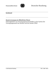 Wissenschaftliche Dienste Sachstand Zusatzversorgung im öffentlichen Dienst Übertragbarkeit von Versorgungsanwartschaften in das System der Versorgungsanstalt des Bundes und der Länder (VBL) © 2016 Deutscher Bundestag WD 3 - 3000 - 034/16