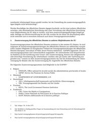 Wissenschaftliche Dienste Sachstand Seite 4 WD 3 - 3000 - 034/16 zustehende Arbeitsentgelt hinaus gezahlt werden, bei der Feststellung des zusatzversorgungspflich- 5 tigen Entgelts nicht berücksichtigt. Werden Beschäftigte des öffentlichen Dienstes dagegen beurlaubt, um bei einer anderen öffentlichen zwischen- oder überstaatlichen Einrichtung oder einer Verwaltung oder öffentlichen Einrichtung eines Mitgliedstaates der EU tätig zu werden, wird kein zusatzversorgungspflichtiges Entgelt ge- zahlt. Beiträge zur Pflichtversicherung bei der VBL werden für die Dauer der Beurlaubung daher 6 nicht entrichtet und es erwachsen demnach auch keine Versorgungsanwartschaften. 3. Zusatzversorgung des öffentlichen Dienstes in anderen Mitgliedstaaten der EU Zusatzversorgungssysteme des öffentlichen Dienstes existieren in den meisten EU-Staaten. So sind insgesamt 26 Zusatzversorgungseinrichtungen des öffentlichen Dienstes aus zahlreichen europäi- schen Ländern Mitglieder im Europäischen Verband der Versorgungseinrichtungen des öffentlichen Dienstes (European Association of Public Sector Pension Institutions - EAPSPI) organisiert. Die Zu- satzversorgungssysteme sind unterschiedlich ausgestaltet. Sie unterscheiden sich beispielsweise im Hinblick auf die Gewährung einer Grund- oder Zusatzversorgung, können eine obligatorische oder freiwillige Versicherung der Arbeitnehmer vorsehen oder per Gesetz oder Tarifvertrag aus- 7 gestaltet sein. Gemein ist allen Zusatzversorgungssystemen das Ziel der Sicherstellung der Alters- versorgung für Beamte oder der Zusatzversorgung für Angestellte des öffentlichen Dienstes. 8 Die folgenden Zusatzversorgungssysteme sind Mitglieder in der EAPSPI: Belgien o ONSSAPL, Office national de sécurité sociale des administrations provinciales et locales o SdPSP, Service des Pensions du Secteur Public Dänemark o SAMPENSION KP LIVSFORSIKRING A/S Deutschland o AKA, Arbeitsgemeinschaft kommunale und kirchliche Altersversorgung o VBL, Versorgungsanstalt des Bundes und der Länder Finnland o KEVA, The Local Government Pensions Institution Frankreich o CDC, Caisse des Dépôts et Consignations o Préfon, Caisse Nationale de Prévoyance de la Fonction Publique o RAFP, Retraite additionnelle de la fonction publique 5 Vgl. Anlage 1 Nr. 16 des ATV. 6 Vgl. Merkblatt zu häufig gestellten Fragen im Zusammenhang mit einer Entsendung nach der Entsendungsricht- linie Bund, S. 16. 7 http://portal.versorgungskammer.de/portal/page/portal/eapspi/de/eapspedia. 8 http://portal.versorgungskammer.de/portal/page/portal/eapspi/de/members.