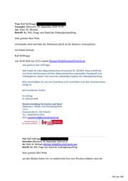 Von: ████████████████ Gesendet: Mittwoch, 30. September 2020 10:59 An: Wild, Dr. Michael Betreff: Sehr geehrter Herr Wild, ich bedanke mich und habe das Dokument gleich an die Initiative weitergeleitet, Ralf Hoffrogge Am 30.09.2020 um 10:52 schrieb Michael.Wild@SenInnDS.berlin.de: Hoffrogge, . n g d t 2 Kl n 90223 2012 Mail: michael.wild@seninnds.berlin.de Von: ███████████ Gesendet: An: <Michael.Wild@SenInnDS.berlin.de> Betreff: g Sehr geehrter Herr Wild, aus den Medien haben wir vor mittlerweile fast zwei Wochen erfahren, dass die