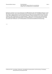 Wissenschaftliche Dienste Kurzinformation Seite 2 Zum ungleichen Wasserverbrauch von israelischen Siedlern und von Palästinensern im Westjordantal Quelle 92 auf Seite 25 ist eine gemeinsame Veröffentlichung des VN-Nothilfekoordinators sowie der NGOs B’tselem, Peace Now und Kerem Navot (Anlage 2). Die hier angeführten Zahlen sind nicht näher aufgeschlüsselt nach Pro-Kopf-Verbrauch, sondern beziehen sich auf den „Gesamt- verbrauch aller Palästinenser im Westjordanland“. Dabei lässt die Quelle keine Rückschlüsse über zugrunde gelegte Einwohnerzahlen im Westjordanland zu. Sie unterscheidet auch nicht zwischen dem Verbrauch von Privathaushalten und landwirtschaftlicher Bewässerung. *** Fachbereich WD 2: Auswärtiges, Völkerrecht, wirtschaftliche Zusammenarbeit und Entwicklung, Verteidigung, Menschenrechte und humanitäre Hilfe